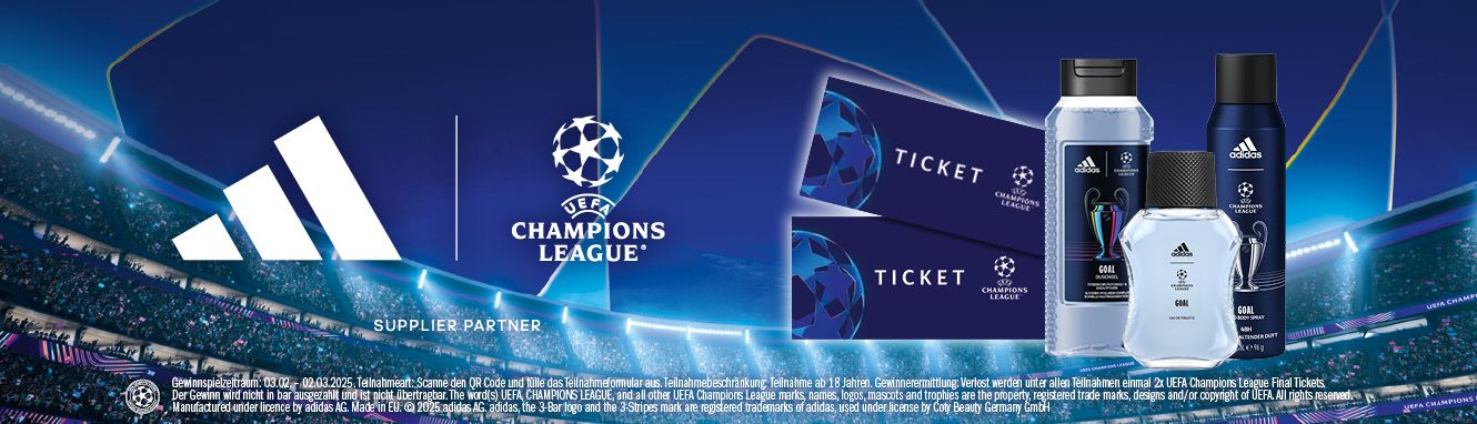 Das erhabene Gefühl beim Betreten des Spielfelds, der entscheidende Schuss aufs Tor, den Pokal in die Höhe heben – sich an der Spitze der Welt fühlen. Die adidas UEFA Champions League Goal Edition feiert den Fußball in all seiner Großartigkeit – als neue offizielle UEFA Champions League-Linie von Duft- und Körperpflegeprodukten. Inspiriert von ikonischen Fußballperfor-mances, fängt die neue Linie den Geist außergewöhnlichen Erfolgs in einem herausragenden, langanhaltenden Frischeerlebnis ein.