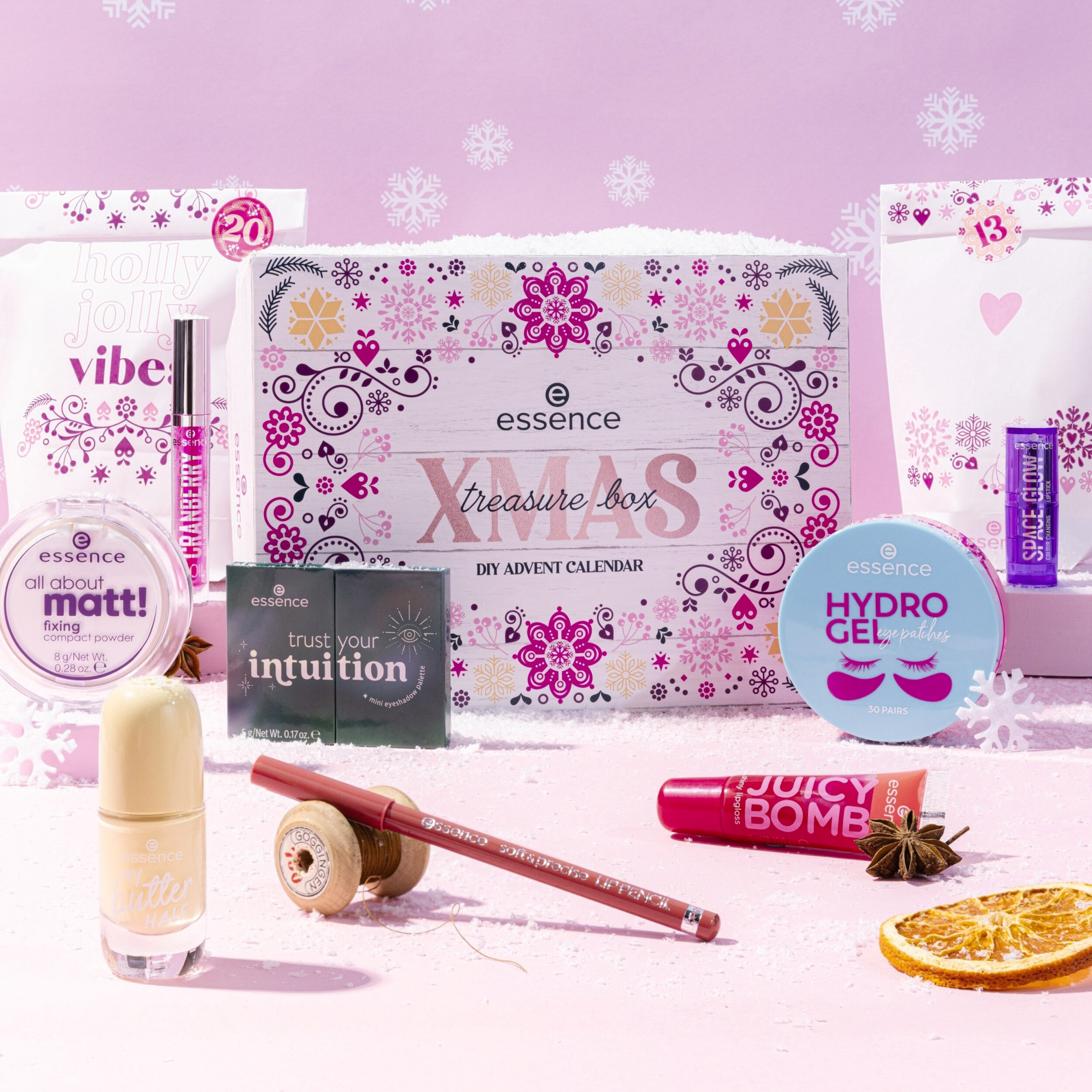 Starte deinen persönlichen Weihnachtscountdown mit einer täglichen Portion Beauty-Freude! Die essence XMAS treasure box DIY ADVENT CALENDAR ist ideal, um Freundinnen und Freunden, Familie – oder dich selbst – mit 24 Beauty-Highlights zu überraschen. Ein magischer Countdown - made with love!