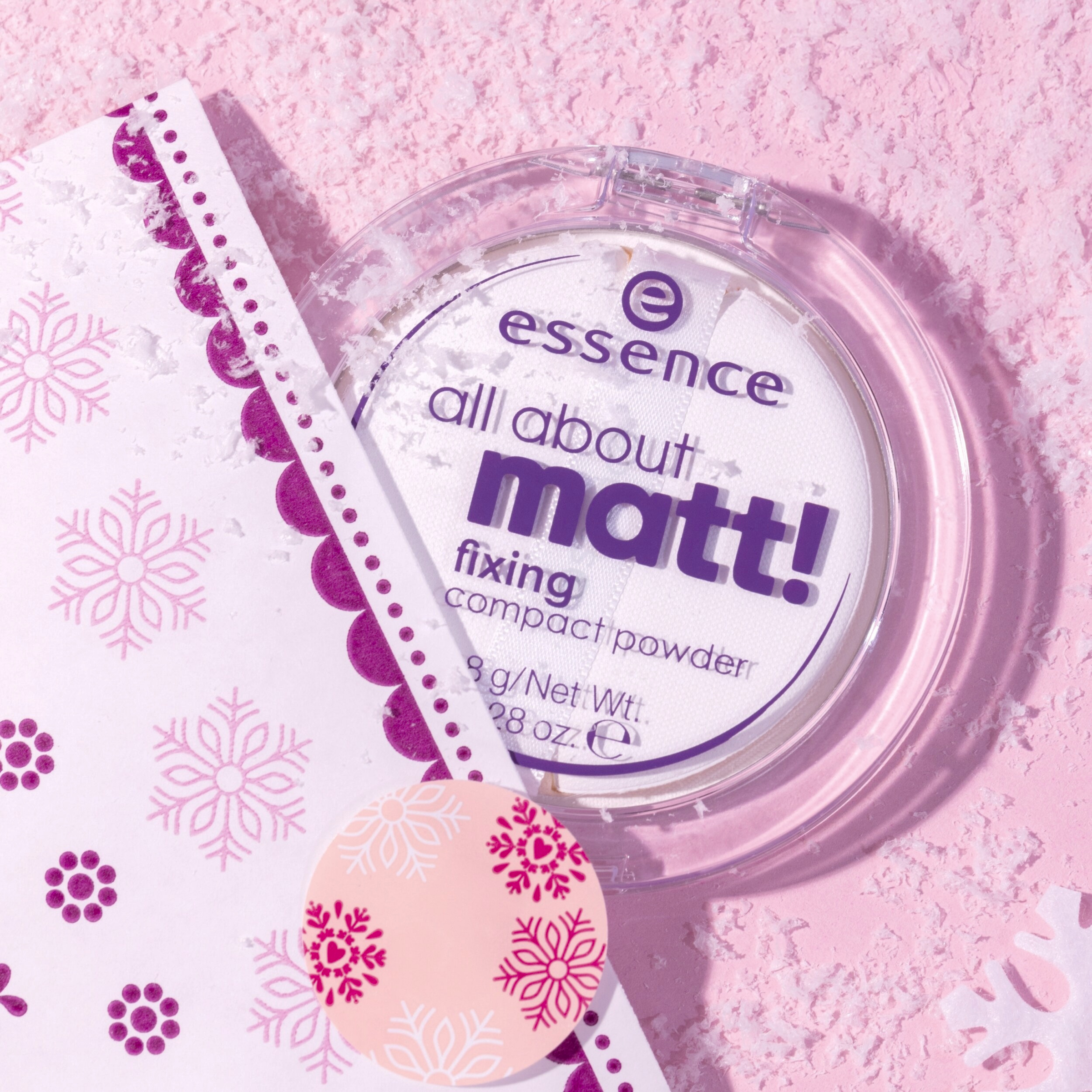 essence all about matt! fixing compact powder 02: TALC, ALUMINUM STARCH OCTENYLSUCCINATE, SAPPHIRE POWDER, AQUA (WATER), MAGNESIUM STEARATE, CAPRYLIC/CAPRIC TRIGLYCERIDE, BIS-DIGLYCERYL POLYACYLADIPATE-2, ETHYLHEXYL PALMITATE, CAPRYLYL GLYCOL, HEXYLENE GLYCOL, PHENOXYETHANOL.
