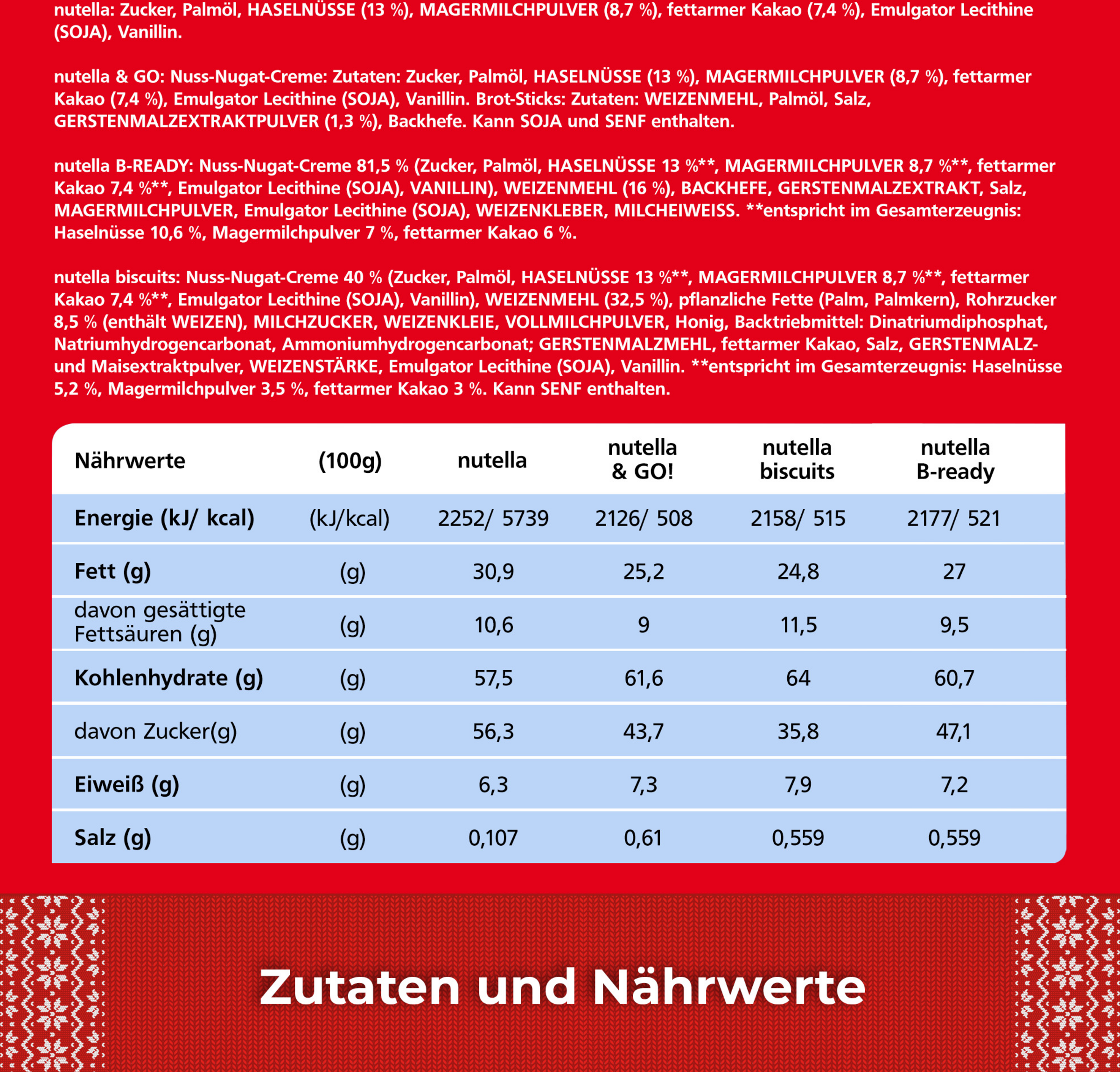 | Nutella | Nutella & GO | Nutella B-Ready | ||||||
