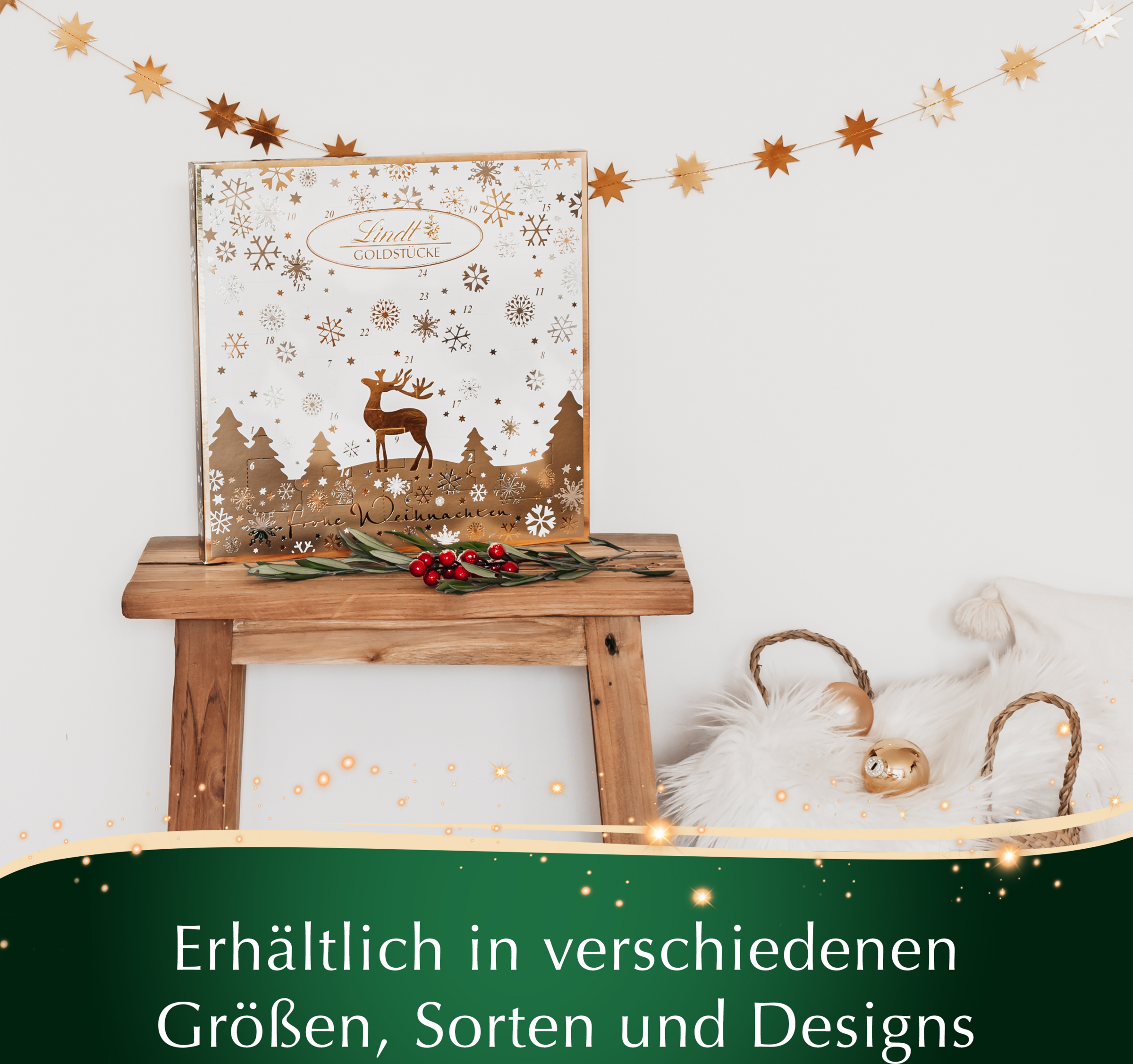 - der Lindt Goldstücke Adventskalender wird zum Blickfang in jedem Raum und verzaubert mit vorweihnachtlichem Charme
