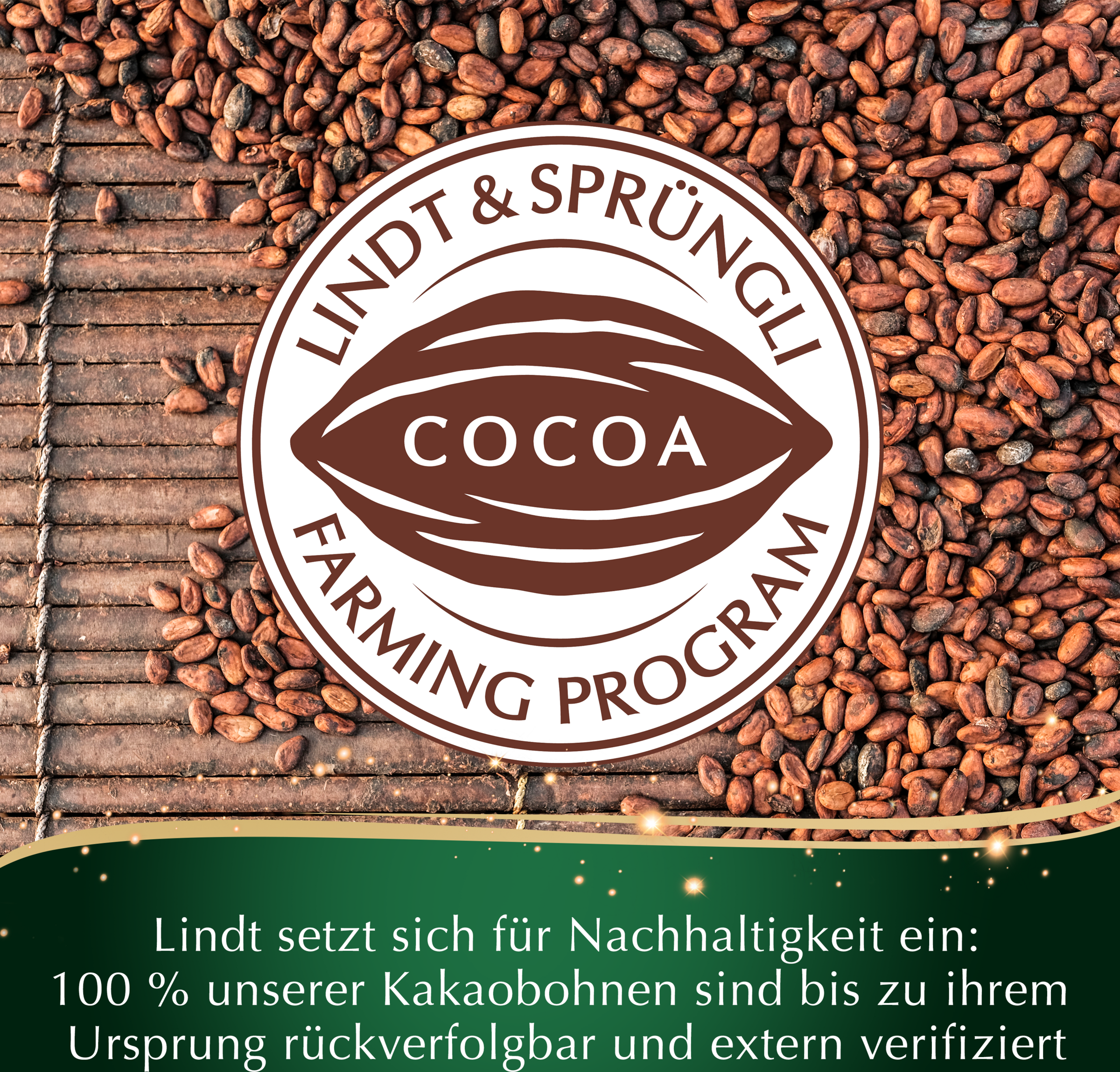- gefüllt mit Schokolade aus feinsten Zutaten, darunter Kakaobohnen aus nachhaltigem Anbau