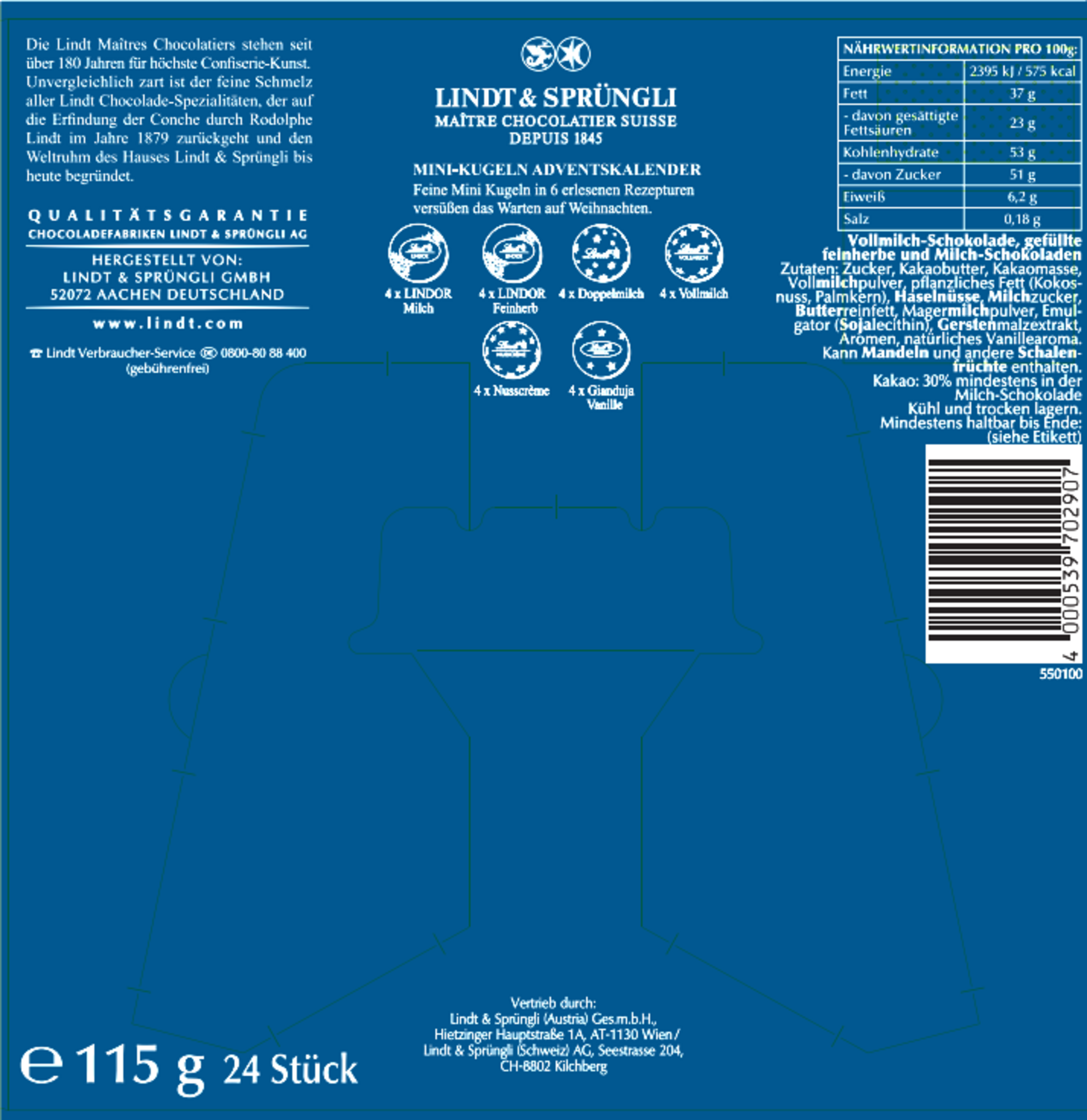 Verwandeln Sie die Adventszeit in eine genussvolle Reise: Der Mini Tisch Adventskalender Weihnachtszauber von Lindt überrascht mit Mini Kugeln in 6 erlesenen Rezepturen, liebevoll ausgewählt von den Lindt Maîtres Chocolatiers.Jedes Türchen enthüllt einen besonderen Genussmoment – perfekt zum Verschenken oder Selbstverwöhnen.