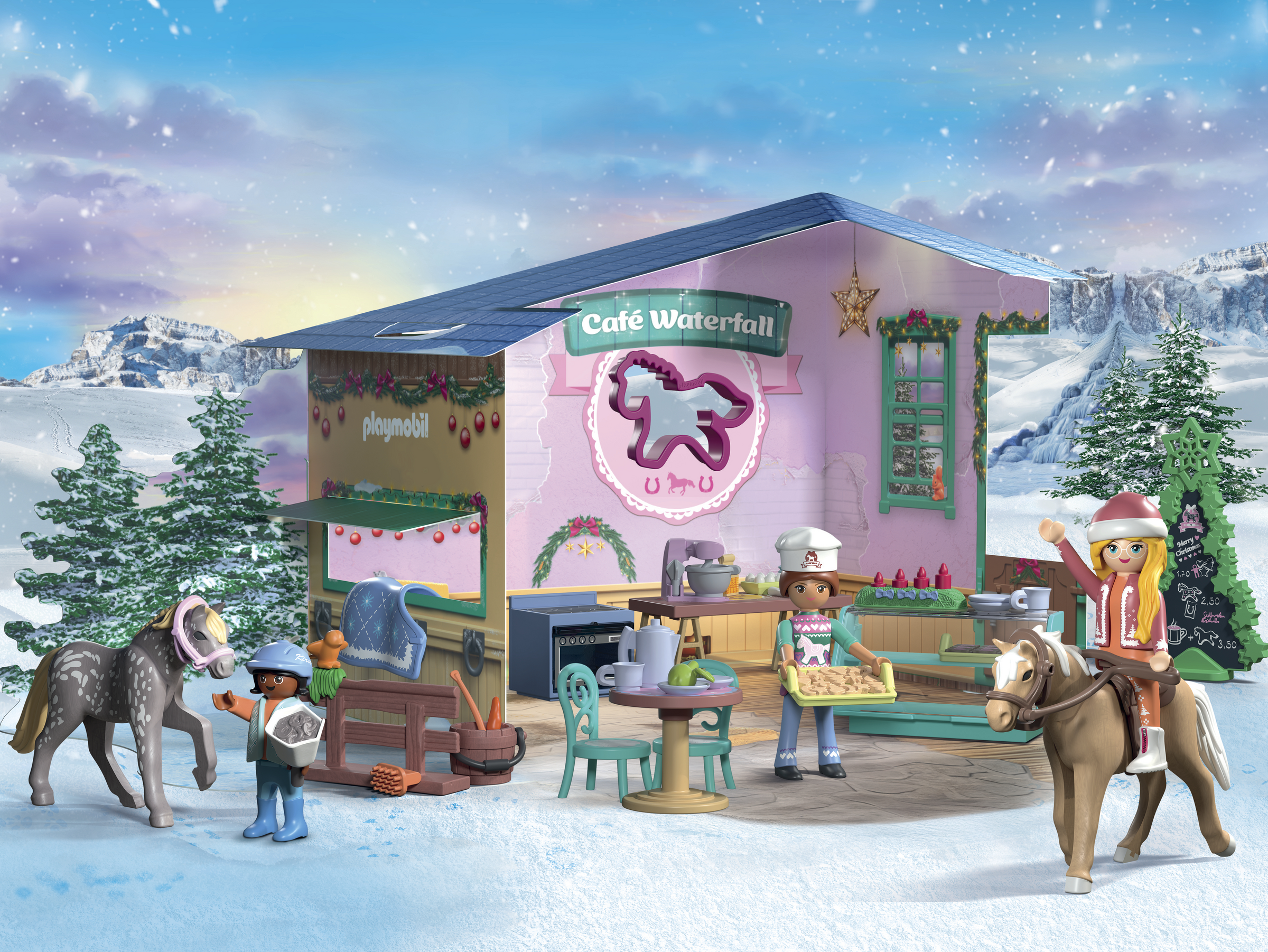 In Waterfall steht Weihnachten vor der Tür. Hmmmmh – ein himmlischer Duft von Gebäck und Punsch liegt in der Luft, der aus dem kleinen cozy Reitercafestübchen von Ellie strömt. Sie hat bereits fleißig gebacken. Für die Pferde stehen verlockende Leckereien bereit. Und das Beste - mit dem wunderschönen Pferdeausstecher lassen sich die Kekse zu Hause nachbacken.