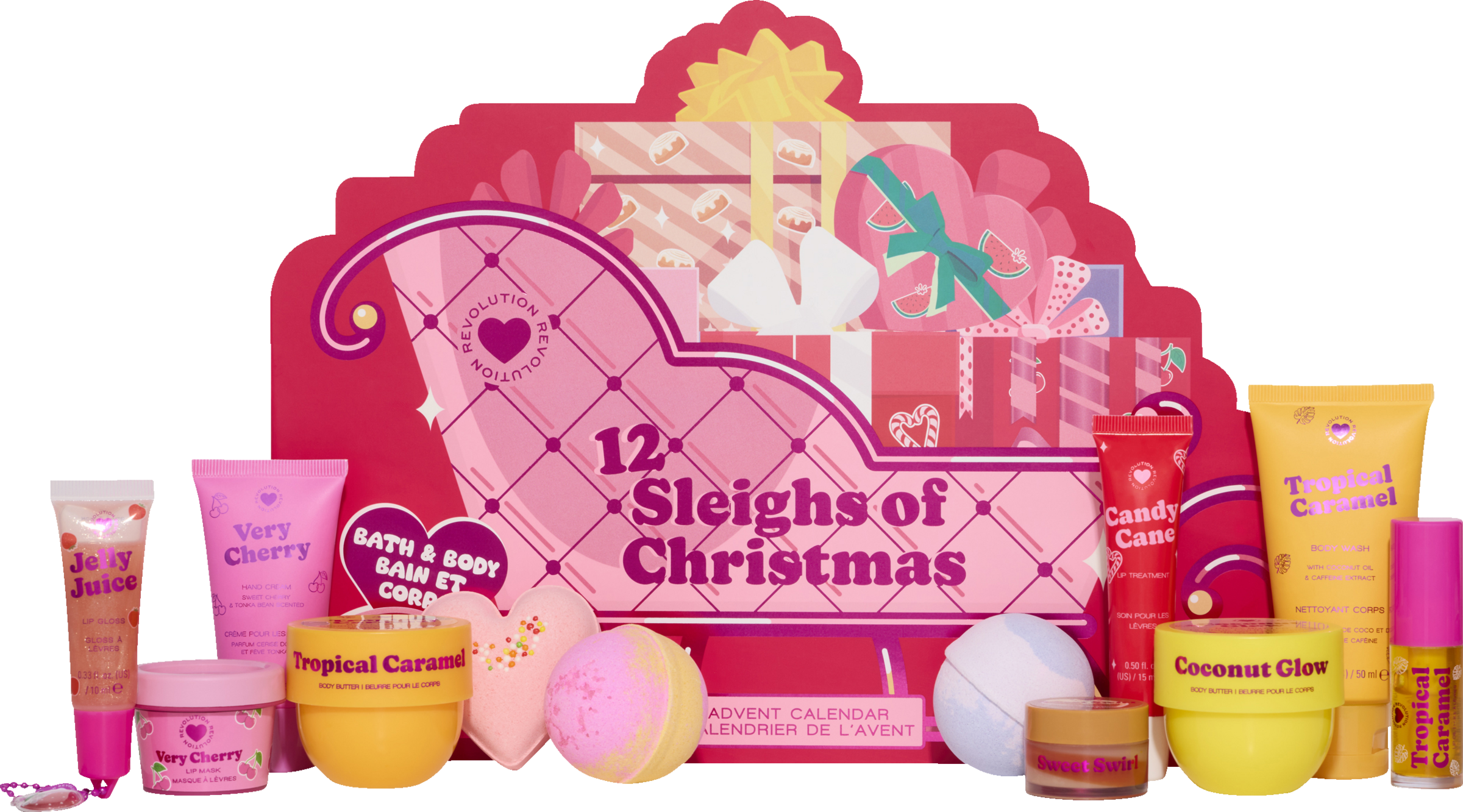 The I Heart Revolution 12 Sleighs of Christmas Advent Calendar steckt voller Beauty-, Bade- und Körperpflege-Überraschungen, die dich von Kopf bis Mistelzweig zum Strahlen bringen. Freu dich auf sprudelnde Badebomben, cremige Körperbutter, intensive Lippenmasken und mehr – perfekt für deinen Weihnachts-Countdown.