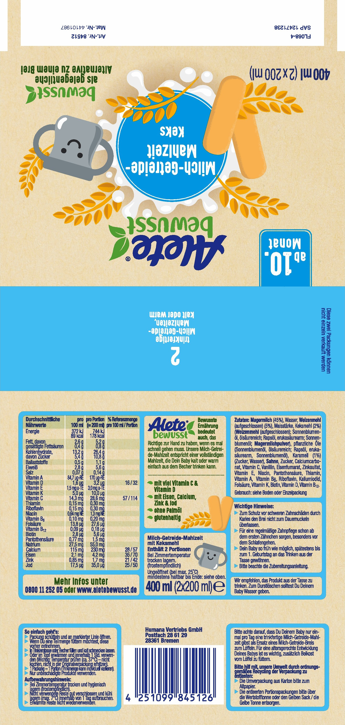 Bitte achte drauf, dass du Deinem Baby nur ein mal pro Tag eine trinkfertige Milch-Getreide-Mahlzeit gibst als Ersatz eines Milch-Getreide-Breis zum Löffeln. Für eine altersgerechte Entwicklung Deines Babys ist es wichtig, zusätzlich Beikost vom Löffel zu füttern.