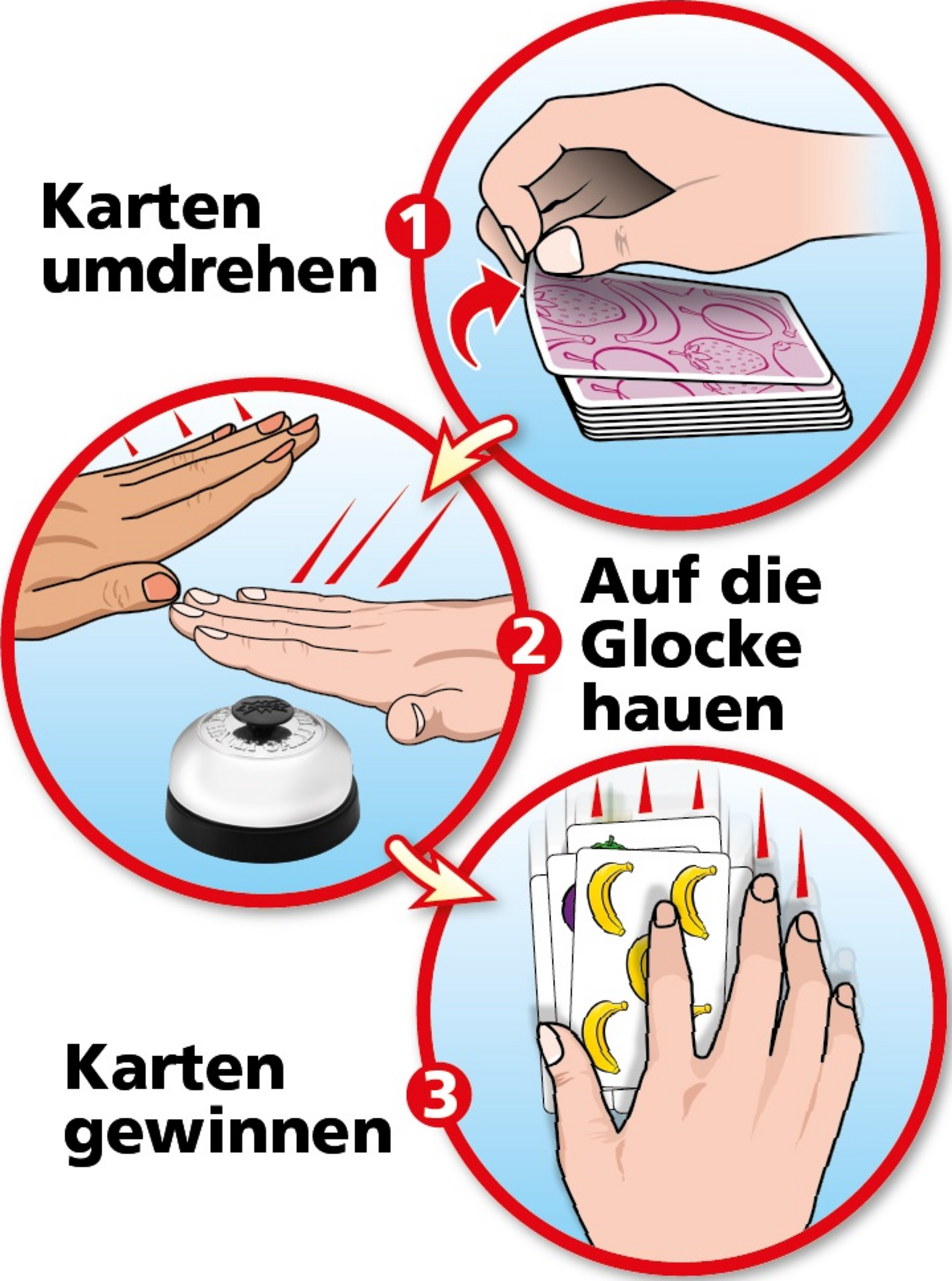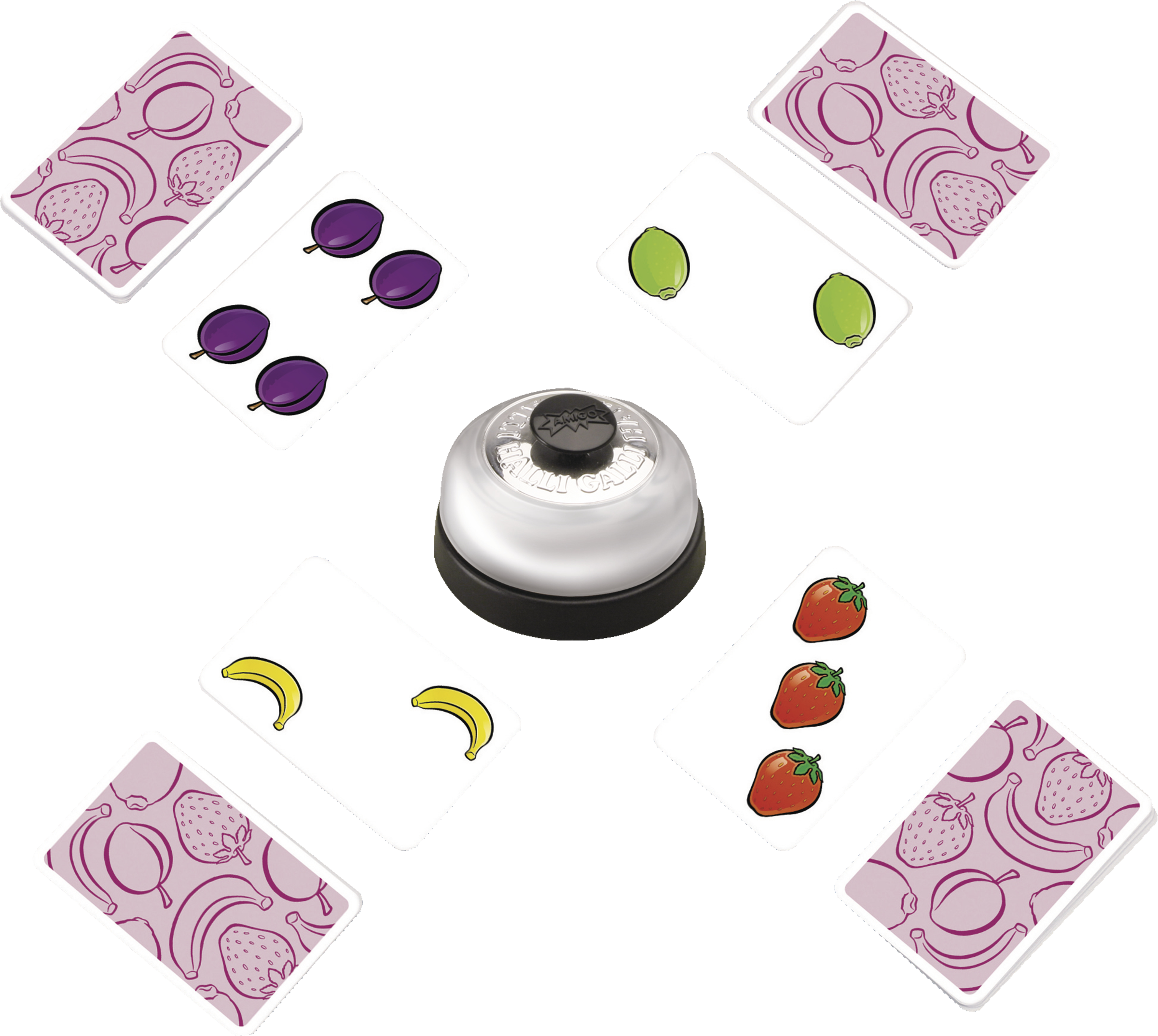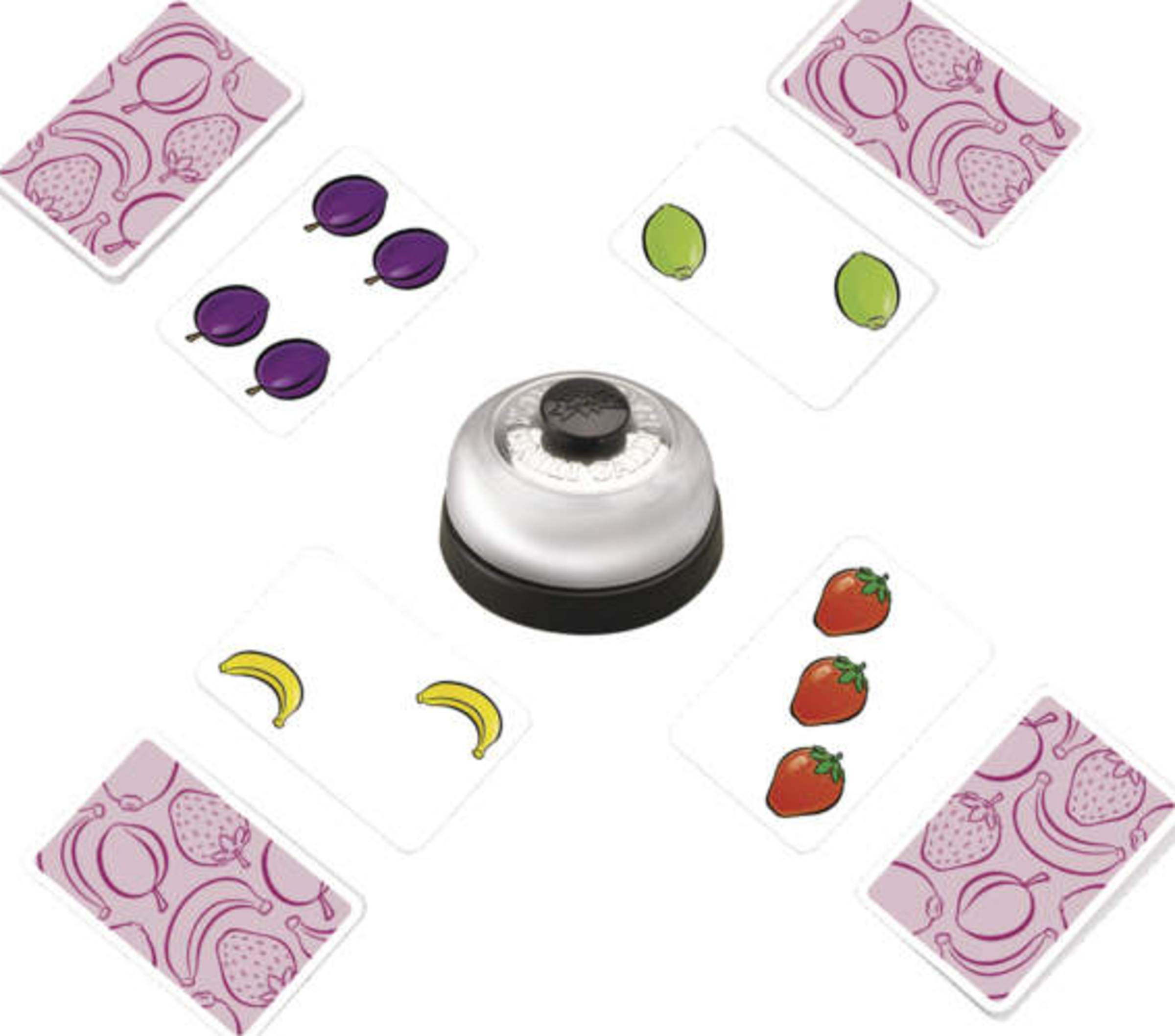 - Inhalt: 56 Karten, 5 Früchte, 1 Glocke