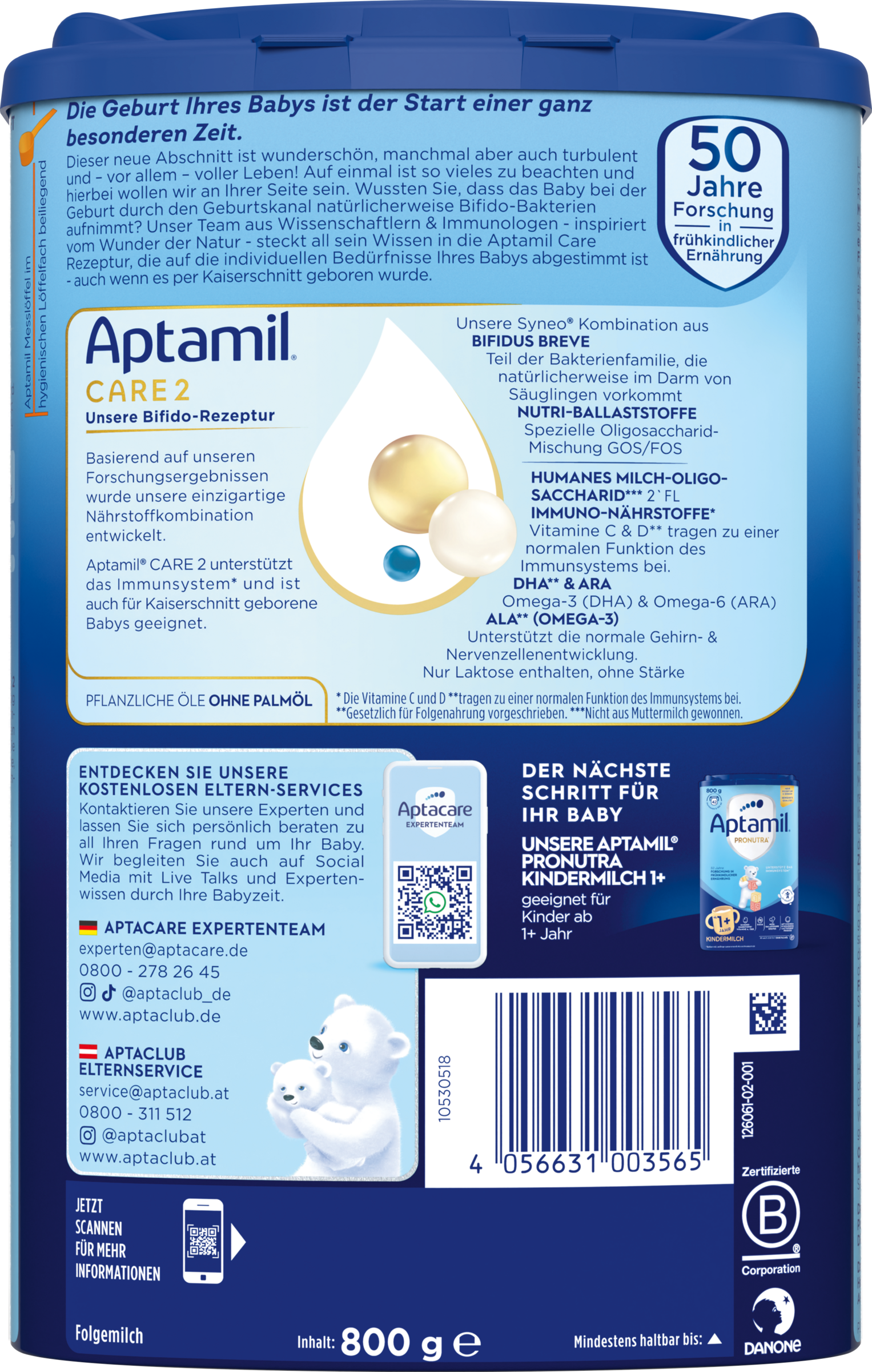 Aptamil Care 2 Folgemilch - Unsere Besondere mit Bifido-Kulturen - auch für Kaiserschnitt geborene Babys.