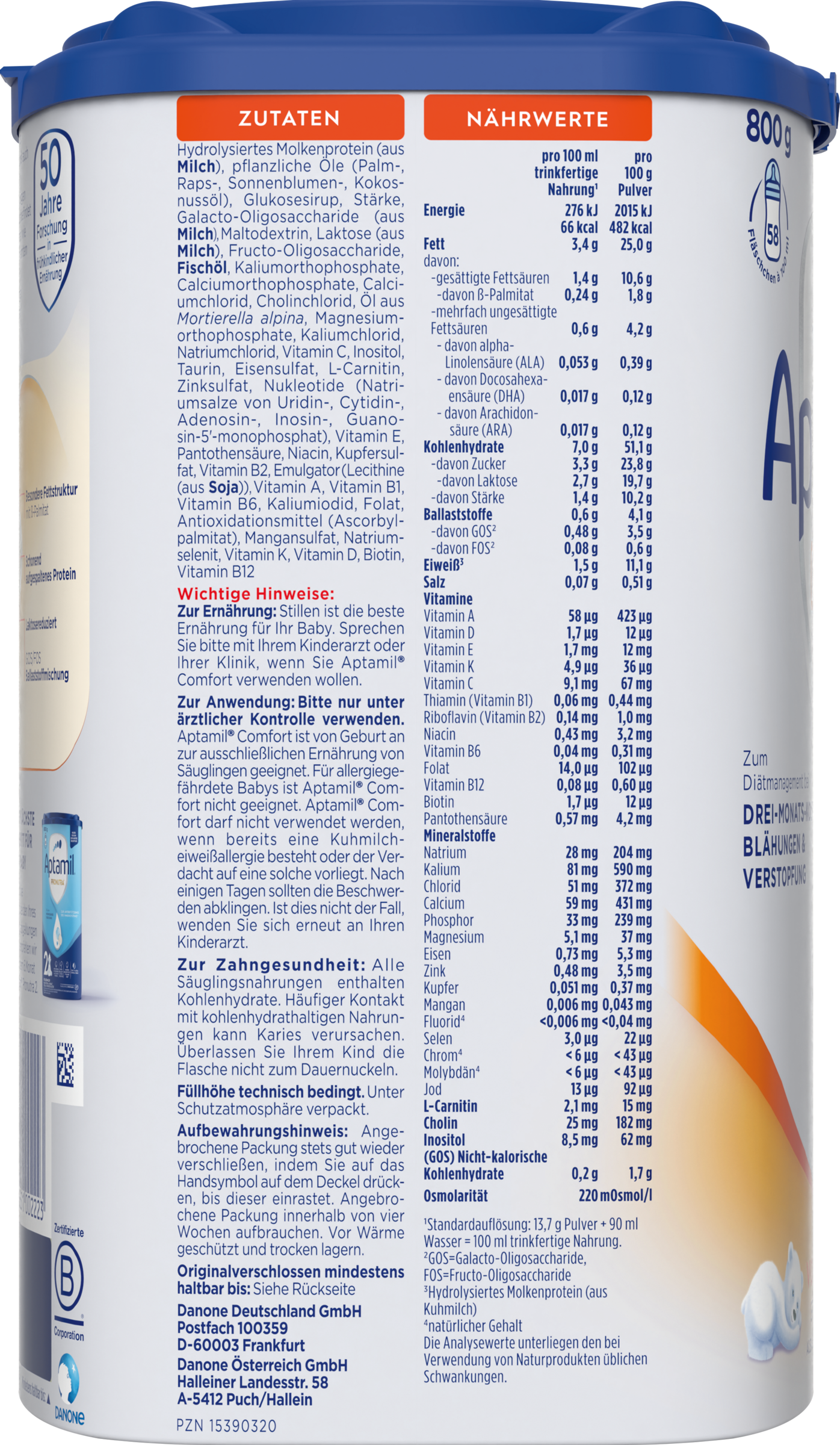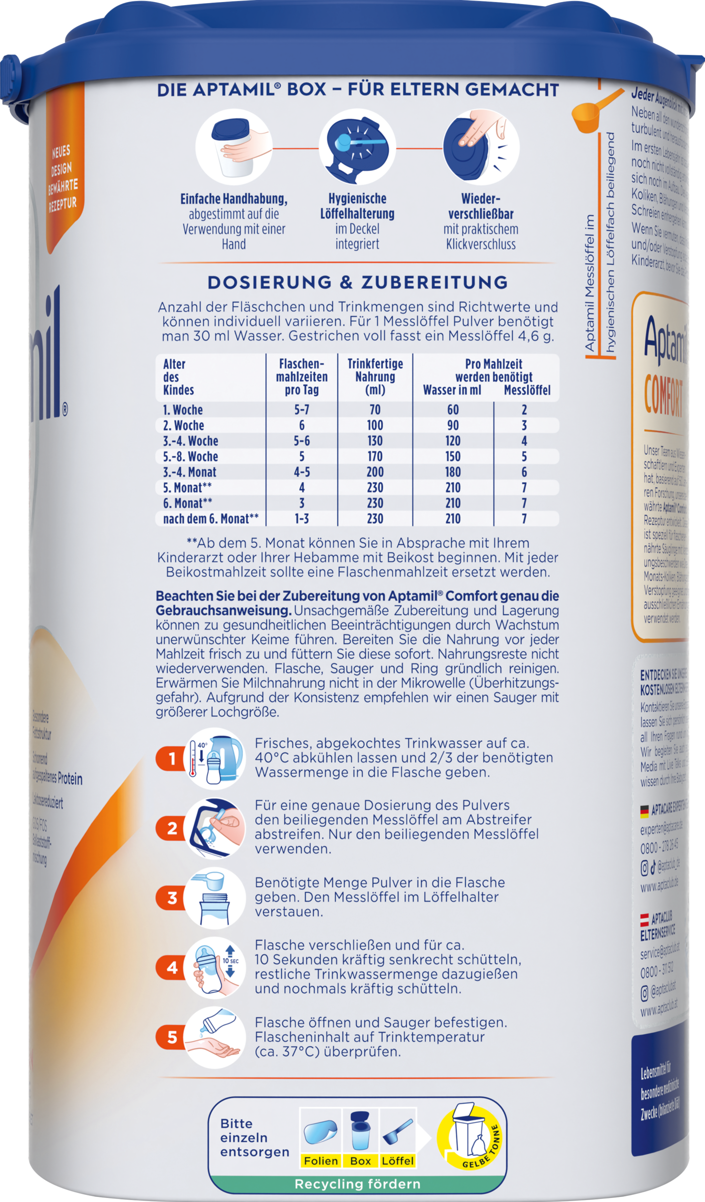 - zur Ernährung: Stillen ist die beste Ernährung für Ihr Baby. Sprechen Sie bitte mit Ihrem Kinderarzt oder Ihrer Klinik, wenn Sie Aptamil® Comfort verwenden wollen.