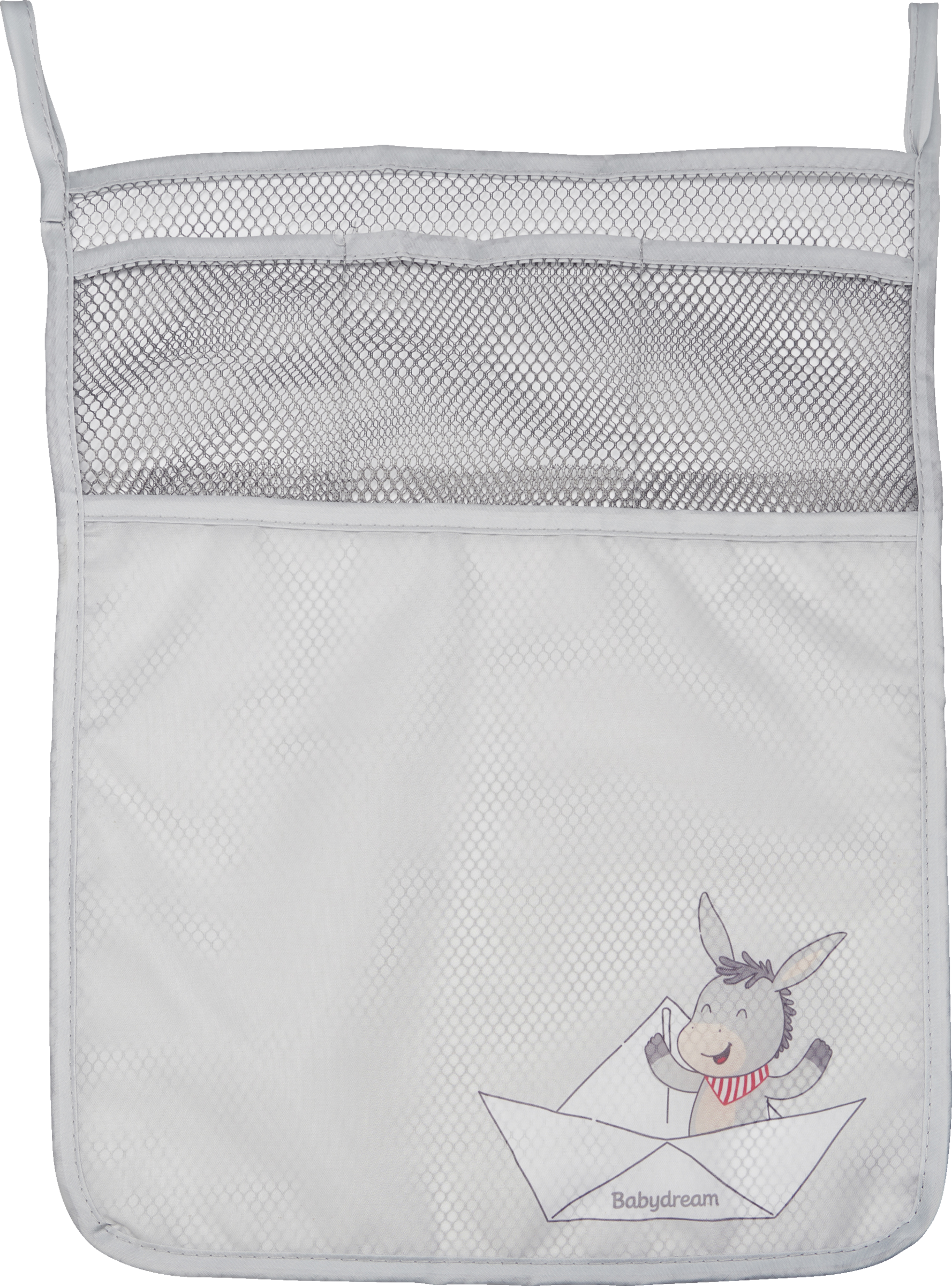 Unser Babydream Badespielzeug-Netz mit niedlichem Emilmotiv bringt Dank seiner vielen Taschen leicht Ordnung ins Badezimmer. Das atmungsaktive Mesh-Gewebe garantiert eine schnelle Trocknung der Badeutensilien. Die einzelnen Taschen ermöglichen eine übersichtliche Aufbewahrung und schnellen Zugriff. Dank der beiden Saugnapfhaken kann das Badespielzeug-Netz problemlos und sicher an den Fliesen befestigt werden.So reinigen Sie das Badespielzeug-Netz Im Wäschesack bei 30°C in der Waschmaschine waschen. Zur Sicherheit und Gesundheit Ihres Kindes: WARN UND SICHERHEITSHINWEISE! Vor Gebrauch sorgfältig lesen. Das Badespielzeug-Netz ist kein Spielzeug! Benutzung nur durch Erwachsene. Die Anbringung des Badespielzeug-Netzes muss außerhalb der Reichweite Ihres Kleinkindes < 3 Jahre erfolgen. Diese Produktinformation bitte aufbewahren. Abenteuer EMIL s Das Badespielzeug-Netz besteht aus: einer großen Tasche, ca.: 26 cm × 30 cm, 3 kleinen Taschen, je ca.: 10 cm × 10 cm, 2 Saugnapfhaken Material: Polyester, Kunststoff