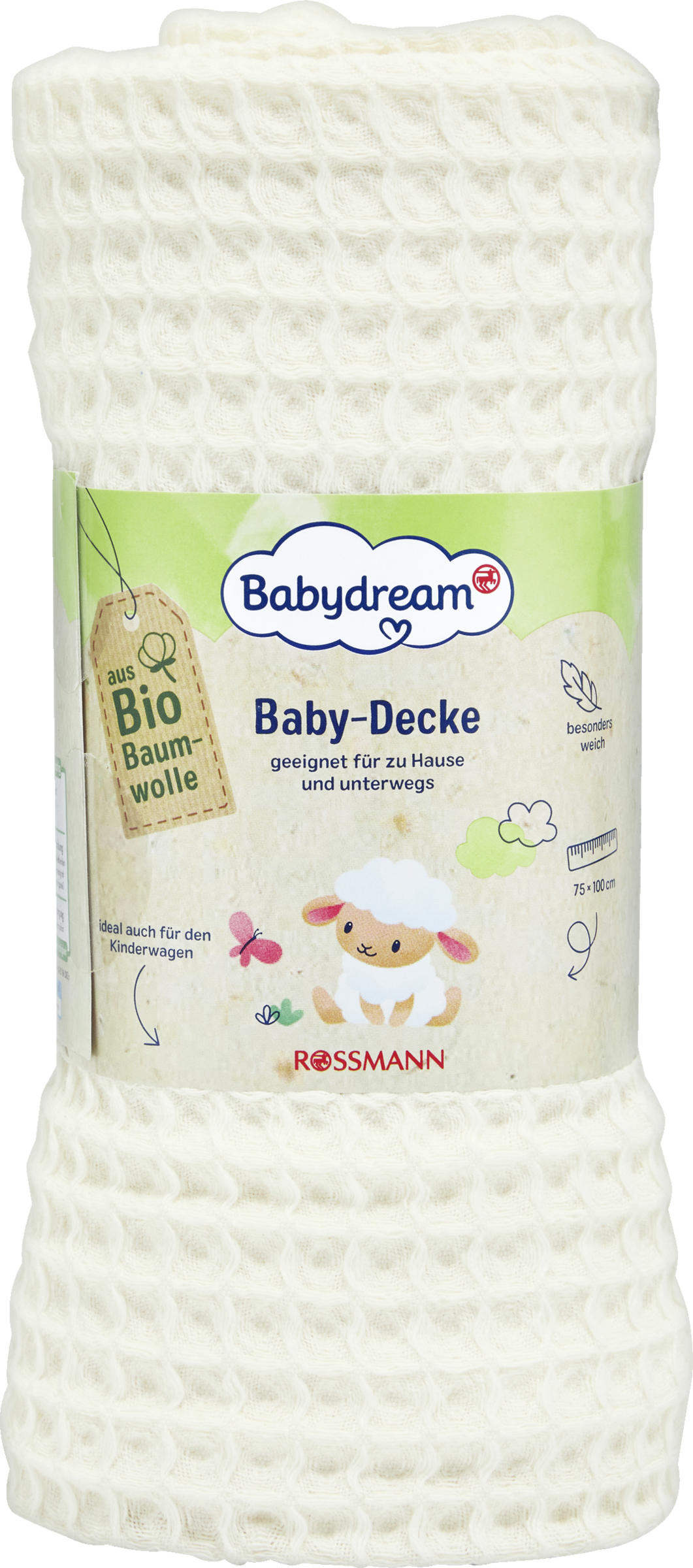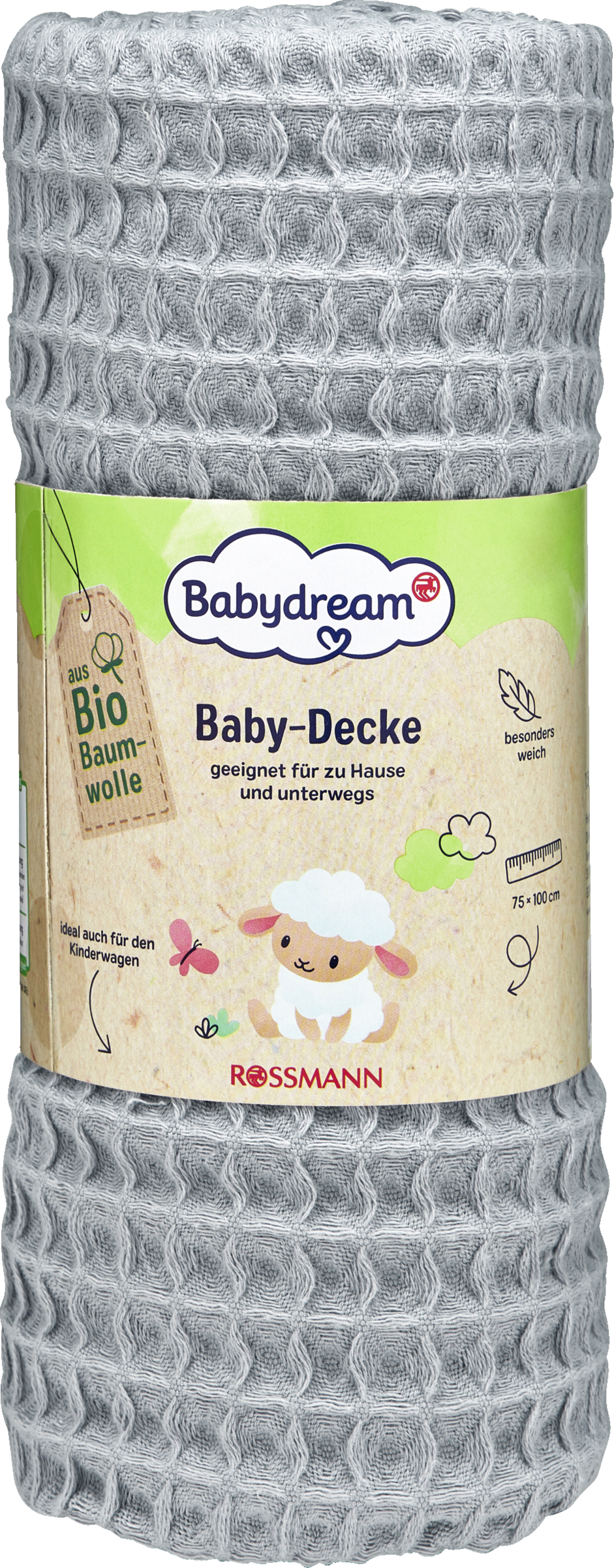 Unsere Babydream Baby-Decke in Waffeloptik aus Bio-Baumwolle sorgt dafür, dass sich Ihr Baby überall wohl und geborgen fühlt. Sie ist kuschelweich zur Haut und eignet sich wunderbar zum Pucken, als leichte Decke für zu Hause, den Kinderwagen , den Autositz oder einfach zum Kuscheln.