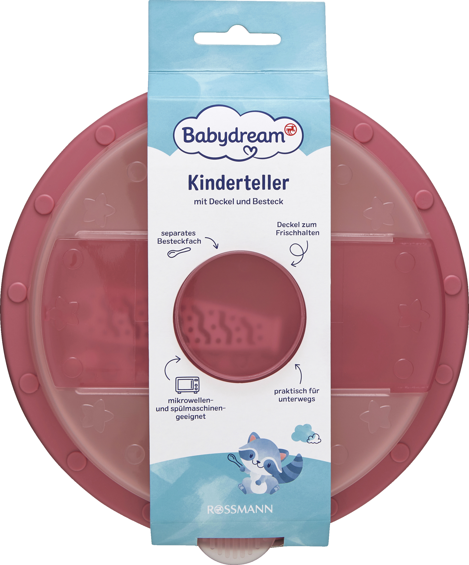 Egal ob zu Hause oder für den kleinen Hunger unterwegs, unser Babydream Kinderteller ist einpraktischer Alltagsbegleiter. Der Deckel hält die Nahrung sicher im Teller und bietet gleichzeitigPlatz für das beiliegende Kinderbesteck. So haben Sie alles griff bereit, wenn es einmal schnellgehen muss. Wir empfehlen den Kinderteller ab 7 Monaten. Für Mikrowelle undSpülmaschine geeignet.