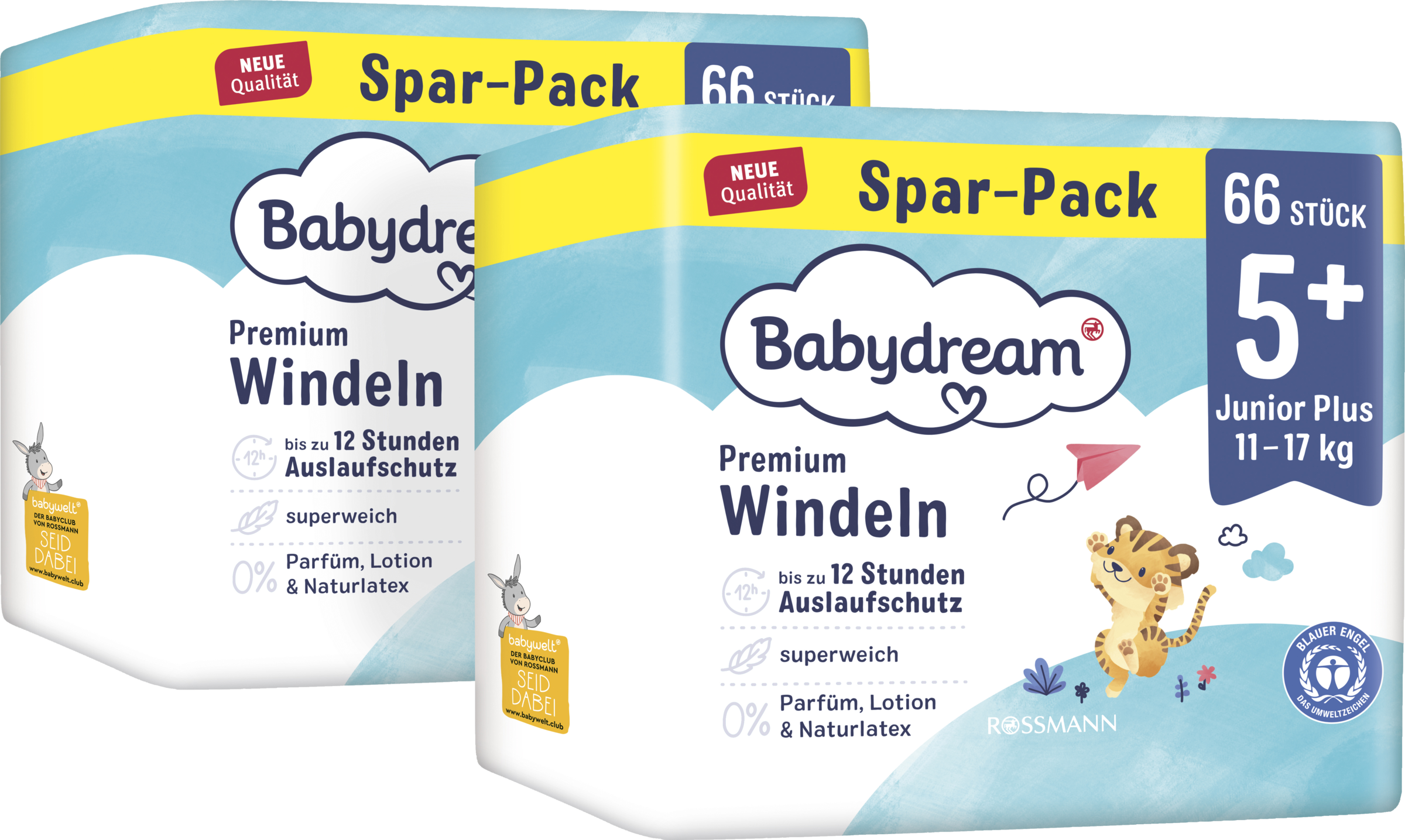 Mit den samtweichen Premium Windeln von Babydream wird die sensible Babyhaut optimal geschützt. Sie bleiben bis zu 12 Stunden trocken und nehmen die Flüssigkeit extra schnell auf. Die optimale Passform bietet jede Menge Bewegungsfreiheit und Tragekomfort, damit Ihr Baby unbeschwert die Welt entdecken und in der Nacht erholsam schlafen kann.