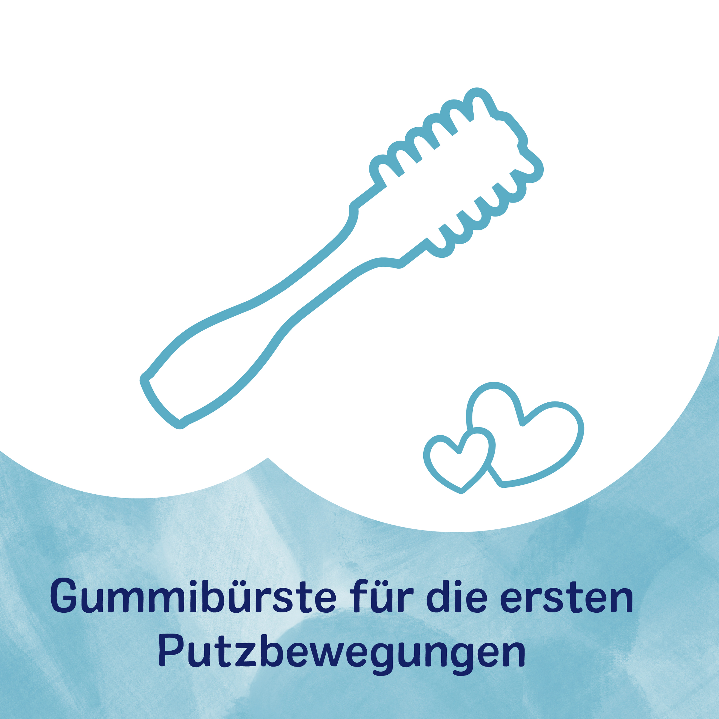 - zuerst lernt Ihr Kind mit der Gummibürste die ersten Putzbewegungen. Die weichen Gummilamellen polieren dabei die Zähnchen und massieren den Gaumen