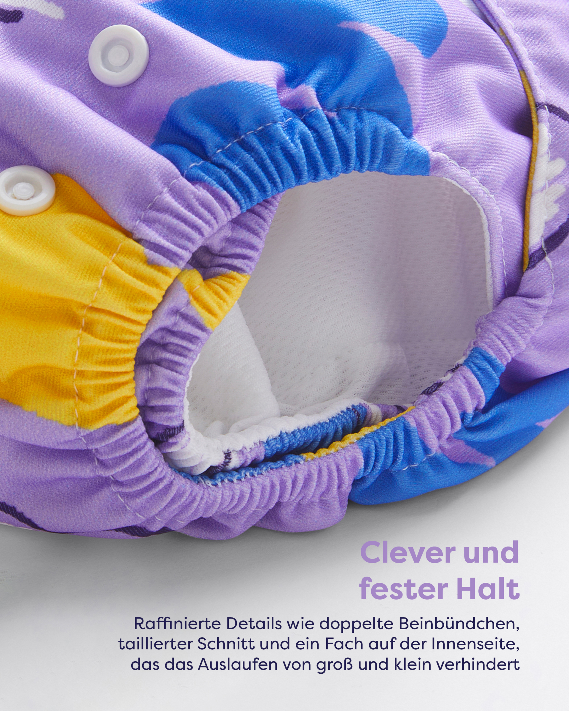 - fester Halt - raffinierte Details wie doppelte Beinbündchen, taillierter Schnitt und ein Fach auf der Innenseite, das das Auslaufen von groß und klein verhindert