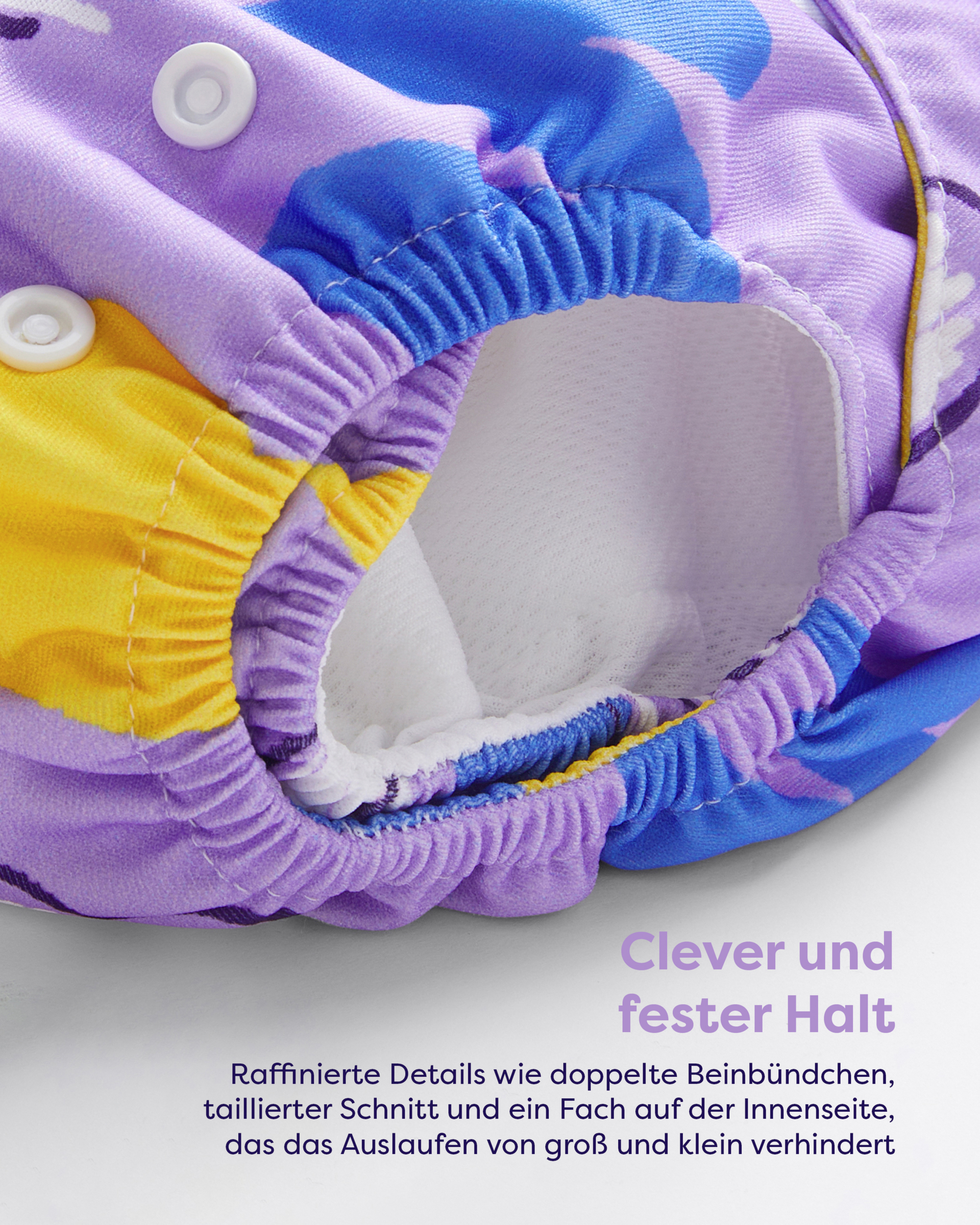 - fester Halt - raffinierte Details wie doppelte Beinbündchen, taillierter Schnitt und ein Fach auf der Innenseite, das das Auslaufen von groß und klein verhindert