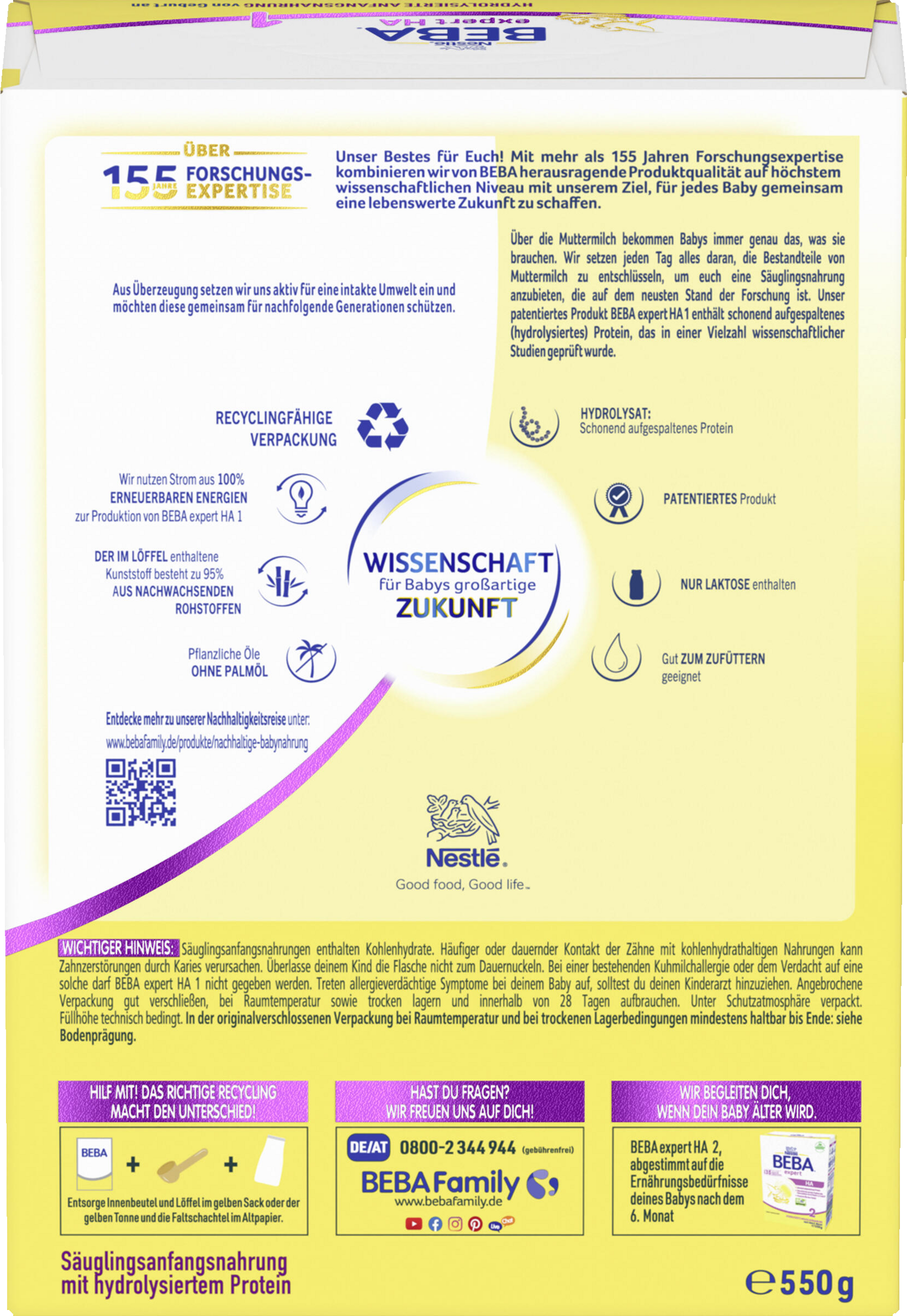 - Erfinder der HA-Nahrung: BEBA ist seit über 35 Jahre Pionier in der Proteinforschung und hat weltweit die erste HA-Nahrung eingeführt