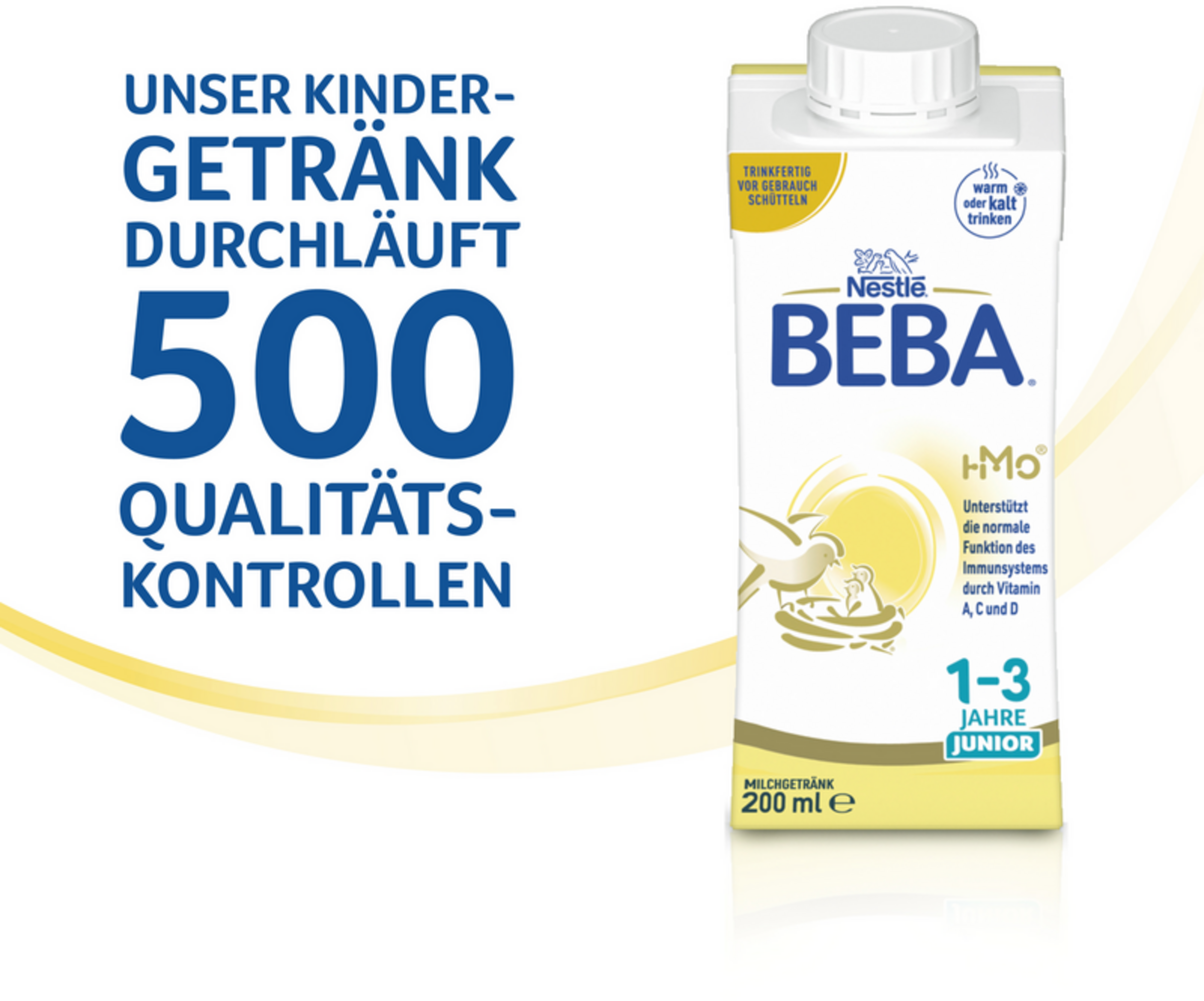 Das Milchgetränk BEBA JUNIOR 1-3 enthält einen einzigartigen Baustein, das sogenannte Humane Milch Oligosaccharid (HMO - nicht aus Muttermilch gewonnen).