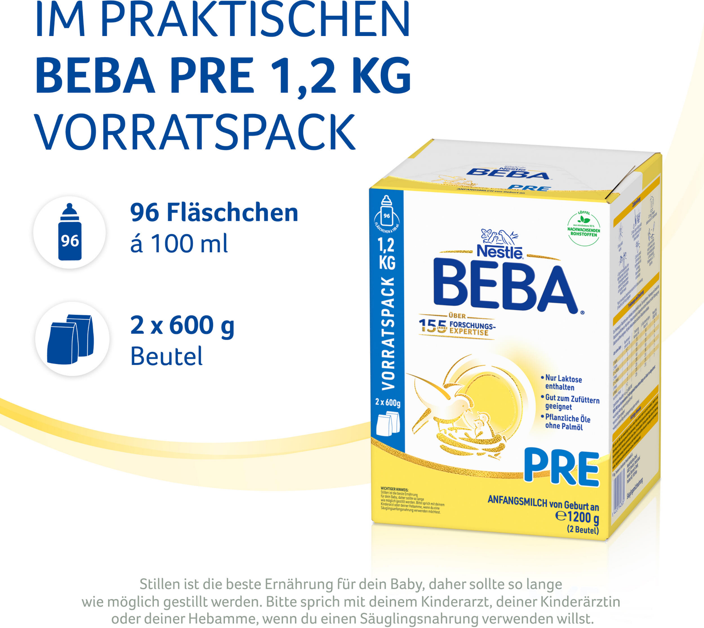 - im Vorratspack: BEBA PRE im Vorratspack 1,2kg (2 Beutel a 600g)