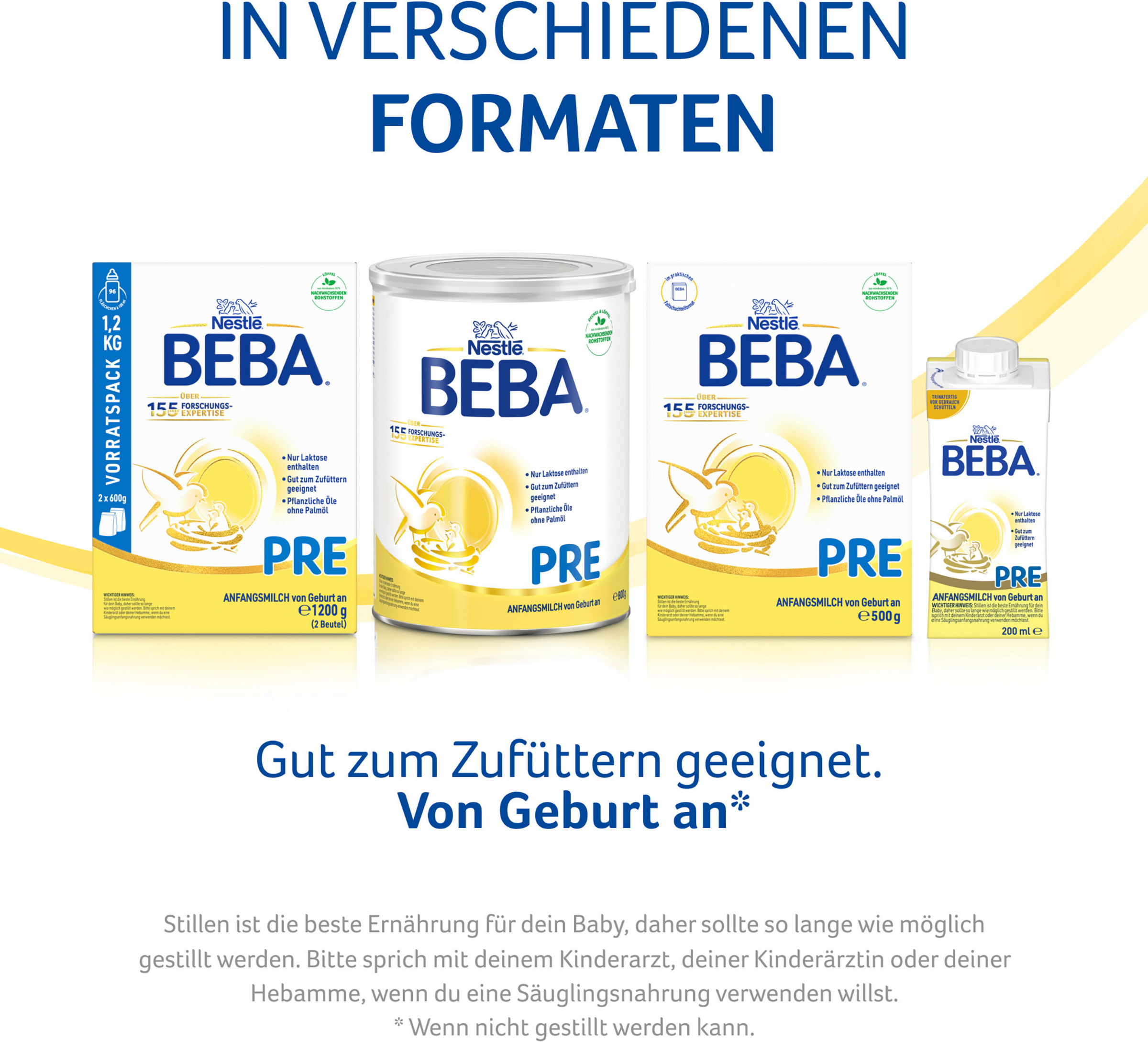 BEBA PRE Anfangsmilch ist auf die Bedürfnisse deines Babys von Geburt an abgestimmt.