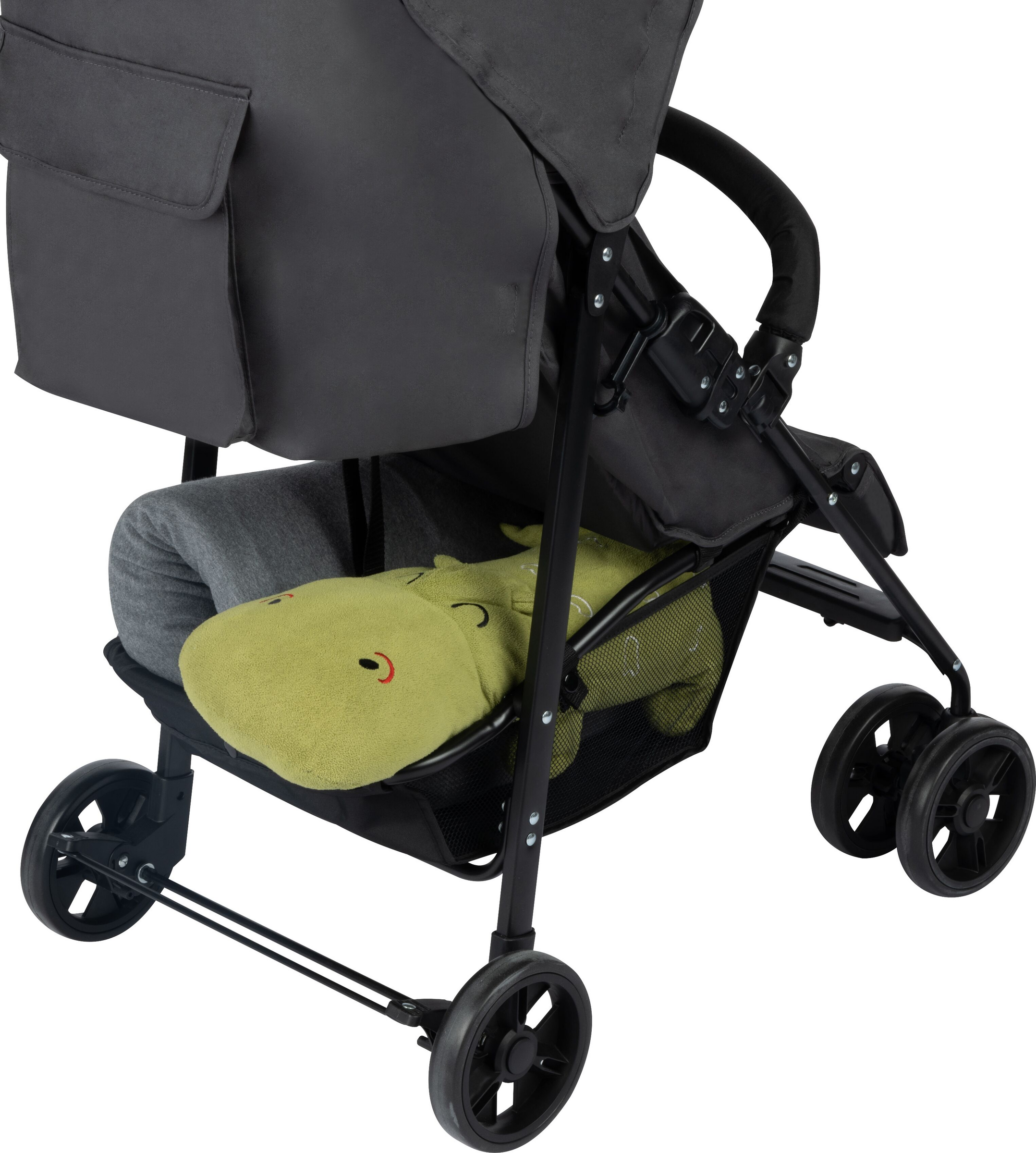 Egal, ob du die Zeit mit deiner Familie genießt oder deine täglichen Besorgungen machst, der Foggy hält dir den Rücken frei. Dank des leichten Gestells und des kompakten Klappmechanismus lässt er sich gut mitnehmen und verstauen – egal, wohin es geht. Im verstellbaren, flachen Sitz können Babys ab der Geburt bis zu einem Gewicht von 15 kg im Foggy liegen. Der Sicherheitsbügel ist schwenkbar, sodass du dein Kind einfach hineinsetzen kannst und es sicher sitzt. Und in der hinteren Tasche und dem Einkaufskorb kannst du alles verstauen, was du brauchst. Dank der schwenkbaren Räder an der Vorderseite, die mit allen Untergründen zurechtkommen, könnt ihr einereibungslose Fahrt genießen, egal wohin das Abenteuer geht. In dem superbequemen, gepolsterten Sitz, der an den Schultern zusätzlich gepolstert ist, sitzt dein Baby bei jedem Spaziergang ganz entspannt. Und wenn es um die Sicherheit geht, sorgt der 5-Punkt-Gurt des Foggy dafür, dass es nicht nach unten rutscht.