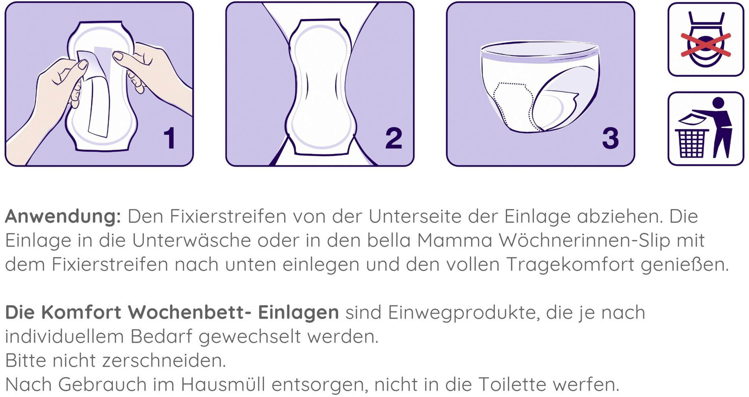 Die bella Mamma Wochenbett-Einlagen Komfort bieten Frauen im Wochenbett die ideale Unterstützung. Diese speziell entwickelten Einlagen zeichnen sich durch ihre anatomische Passform aus, die höchsten Tragekomfort gewährleistet. Dank der atmungsaktiven Materialien bleibt die Haut angenehm trocken und geschützt. Der integrierte Saugkern mit Superabsorber sorgt für eine herausragende Saugfähigkeit, die speziell für stärkere Blutungen nach der Geburt oder gynäkologischen Eingriffen entwickelt wurde. Die extra sanfte und weiche Oberflächenstruktur bietet ein angenehmes Hautgefühl und ist unbedenklich für heilende Wunden, gemäß der ISO-Norm 10993-5. Das innovative Verteilungsvlies ermöglicht eine schnelle Flüssigkeitsaufnahme und unterstützt die gleichmäßige Verteilung, sodass ein sicheres und trockenes Gefühl erhalten bleibt. bella Mamma Komfort Wochenbett-Einlagen sind die perfekte Wahl für Frauen, die sich in dieser besonderen Zeit auf zuverlässigen Schutz und höchsten Komfort verlassen möchten. Vertrauen Sie auf Qualität, die speziell für Ihre Bedürfnisse entwickelt wurde.