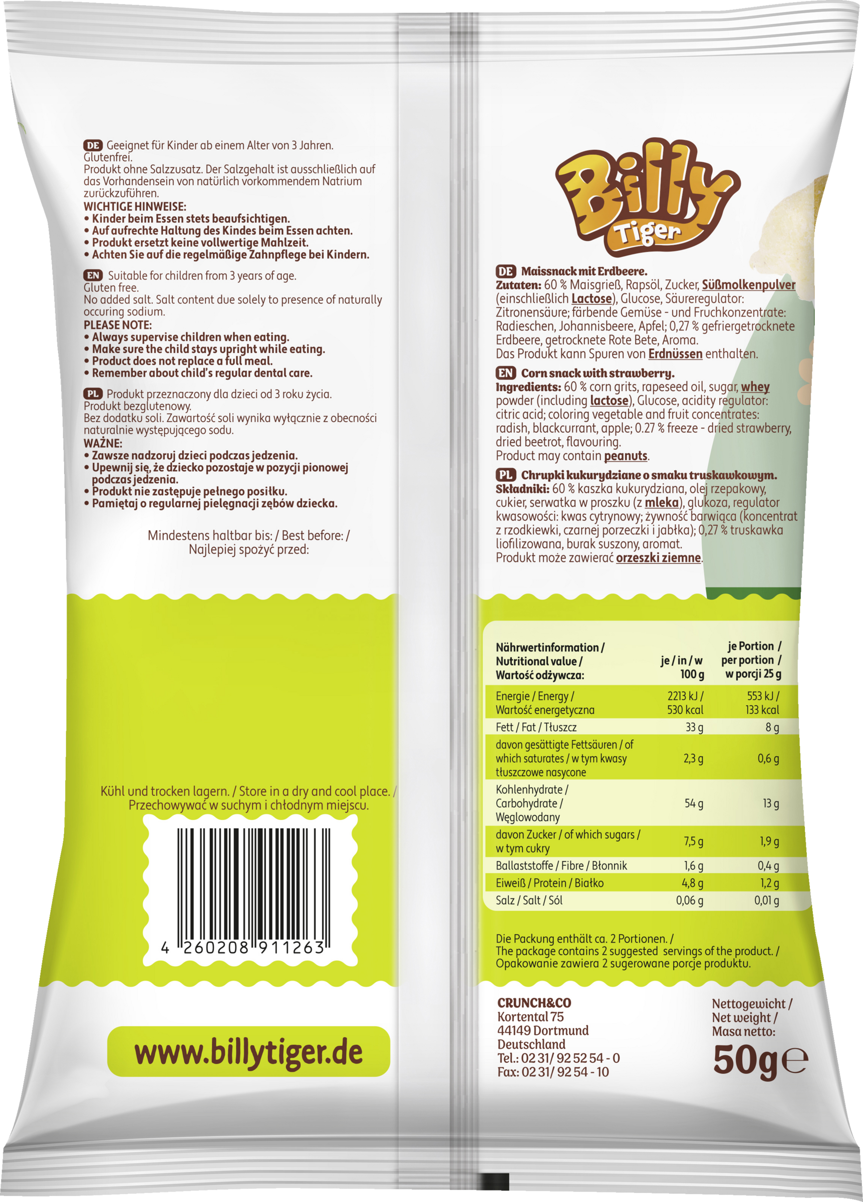 Kinder beim Essen stets beaufsichtigen. Auf aufrechte Haltung des Kindes beim Essen achten. Produkt ersetzt keine vollwertige Mahlzeit. Achten Sie auf die regelmäßige Zahnpflege bei Kindern.