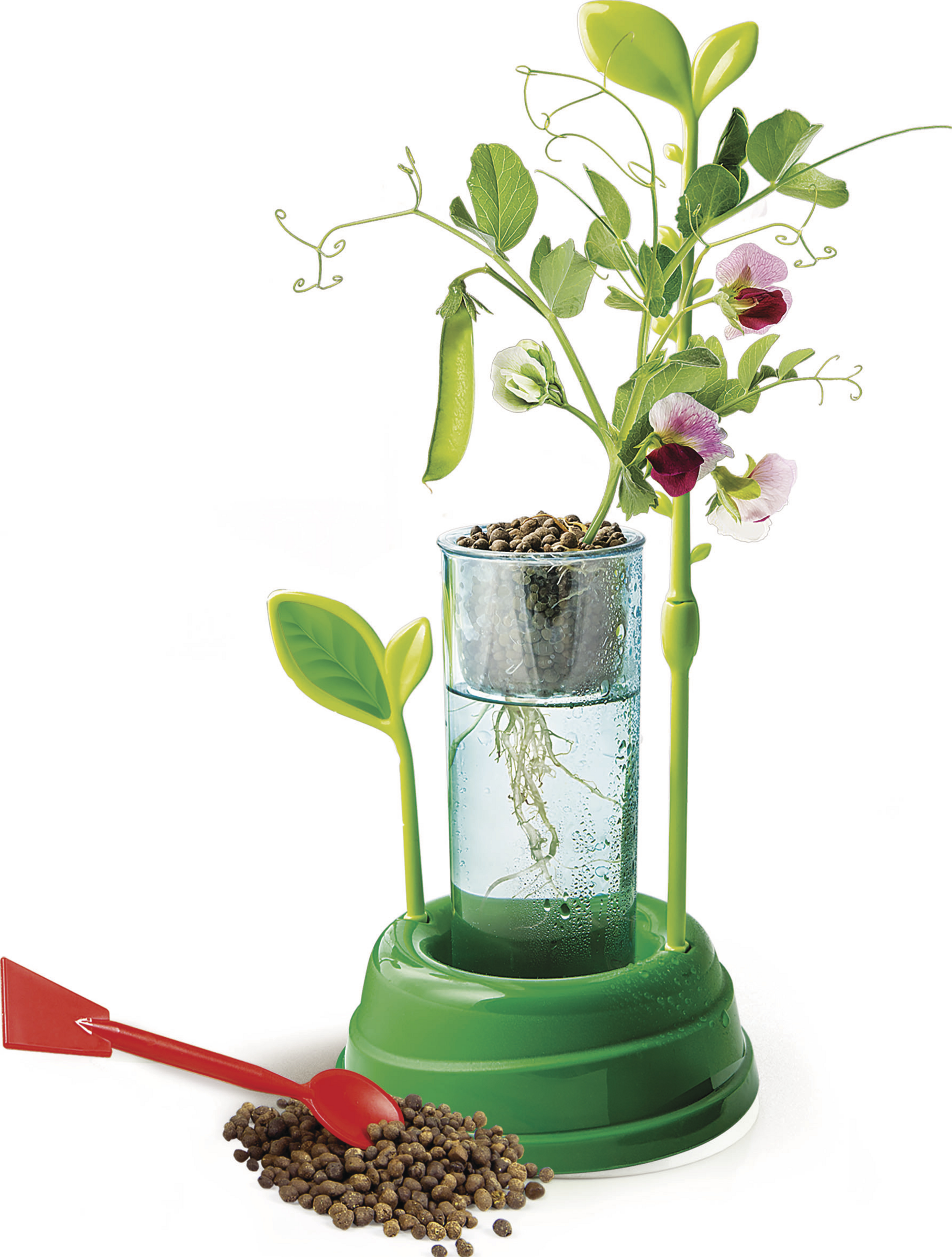 Ein innovatives Set zum Experimentieren mit Techniken der Hydrokultur! Mit diesen besonderen Pflanzgefäßen können Kinder Pflanzen ohne Erde anbauen! Das Set enthält auch Pflanzenwurzelmaterial, Saatgut und pulverisierten Pflanzendünger. Die umfassend illustrierte Anleitung beinhaltet alle Informationen, die das Kind beim Entdecken dieser neuen Art der Pflanzenzucht benötigt!
