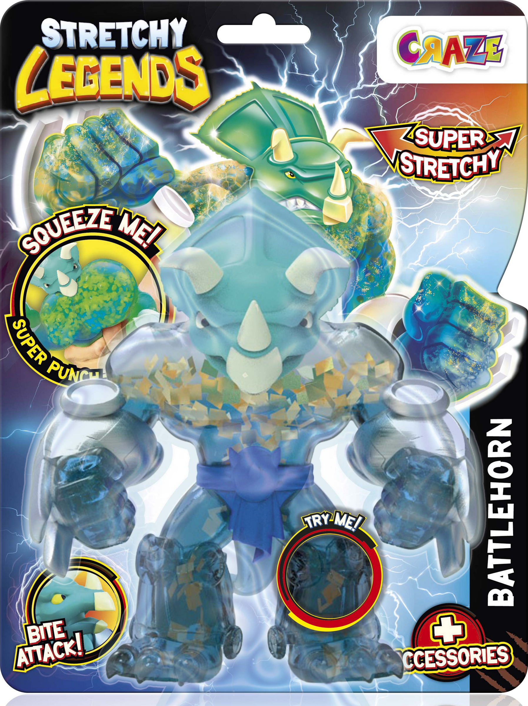 Mach dich bereit für richtig starke Action: Die STRETCHY LEGENDS sind Super-Krieger mit unglaublichen Kräften. Mit ihnen kommt eine Menge Zeug, wie mächtige Waffen, erstaunliche Rucksäcke und außergewöhnliche Helme. Dehnbare, glibberige und super actionreiche Sammelfiguren von LEGENDS. Verschiedene Füllungen im Inneren voller Farben, Schleime, toller Teilchen und vielem mehr - einschließlich Zubehör.