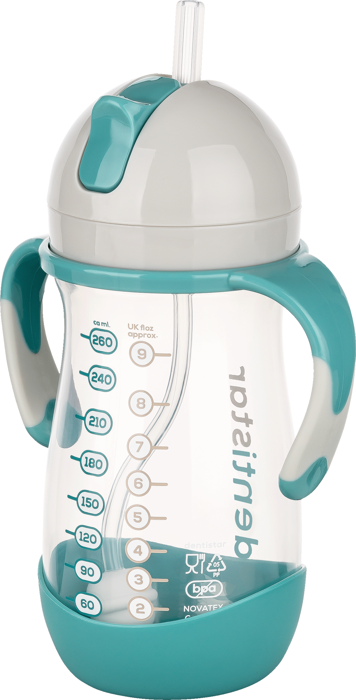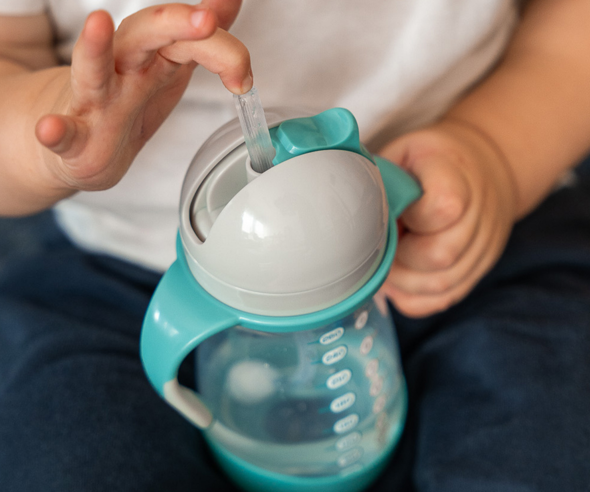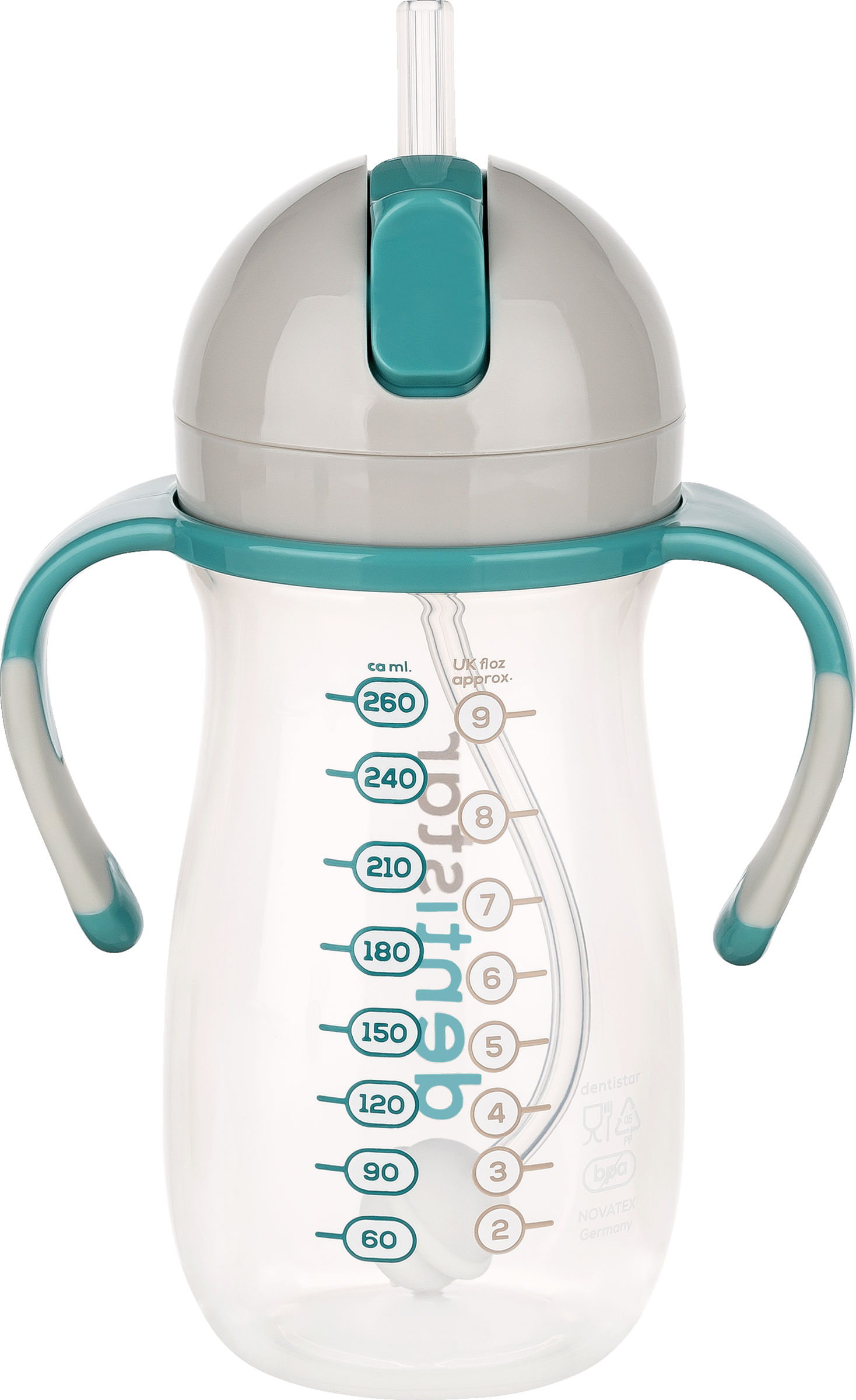 Trinkhalme sind für Kinder unter 6 Monaten nicht geeignet. Werfen Sie das Produkt bei ersten Anzeichen von Beschädigungen oder Mängeln sofort weg. Alle nicht verwendeten Einzelteile müssen außerhalb der Reichweite von Kindern aufbewahrt werden. Bringen Sie niemals Schnüre, Bänder, Schnürsenkel oder Teile von Kleidungsstücken an das Produkt an. Strangulationsgefahr!