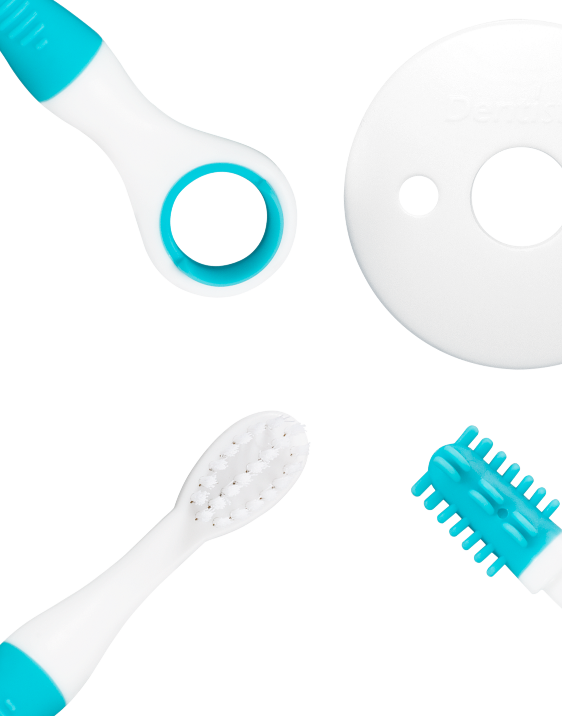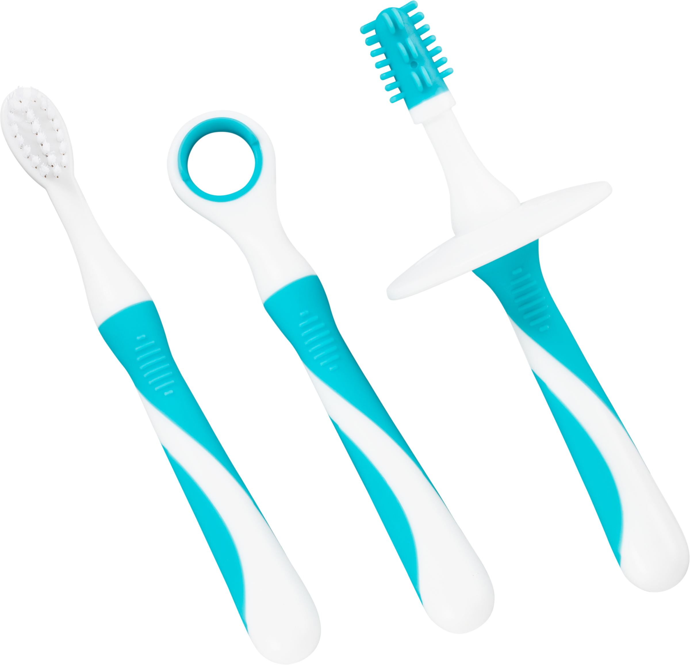 Mit dem Putztrainer massiert sich Ihr Kind sanft das Zahnfleisch und gewöhnt sich dabei an das Zähneputzen. Der Schutzring verhindert, dass der Putztrainer zu weit in den Hals reicht. Mit der Zahnbürste putzen Mama und Papa die kleinen Zähnchen und mit dem Zungenreiniger sorgen Sie für eine optimale Mundhygiene. Die ergonomisch geformten und rutschsicheren Griffe liegen gut in der Hand und sorgen für einen sicheren Halt.