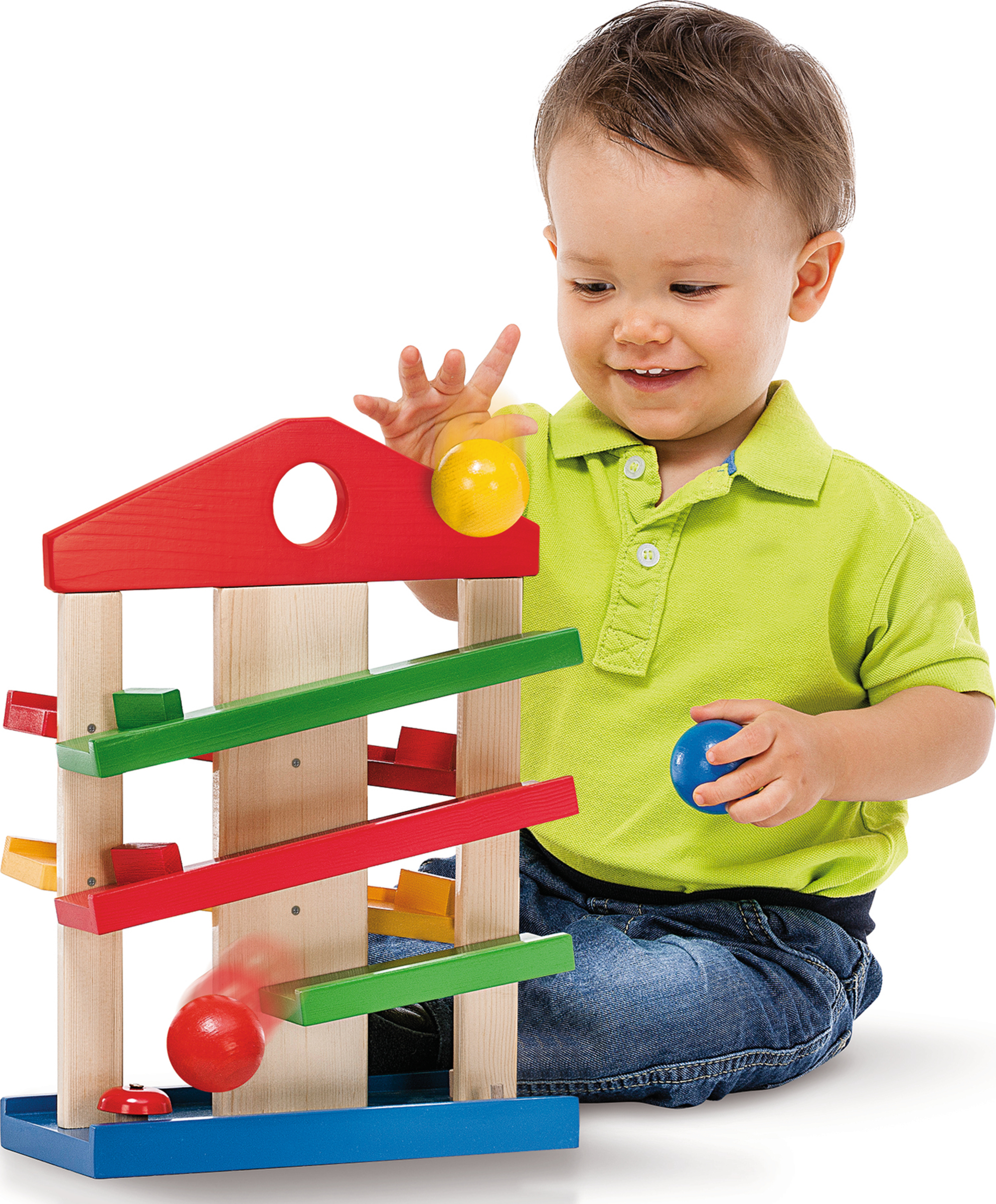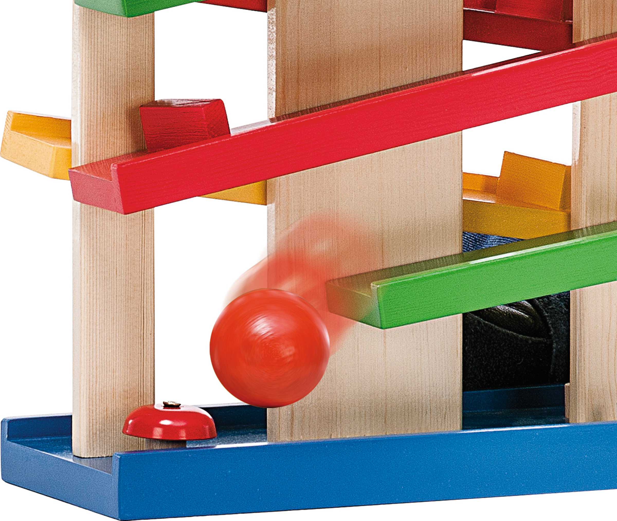 Das kunterbunte Kugelbahnhaus von Eichhorn sollte in keiner Kinderstube fehlen. Das Haus umfasst eine Größe von 25 x 12 x 34 cm und beim Rollen der Kugeln von oben nach unten auf 5 Schienen staunen kleine Kinderaugen. Die kullernden bunten Holzkugeln läuten die Glocke wenn sie wieder am Boden ankommen. Für Kinder ab einem Jahr geeignet. &