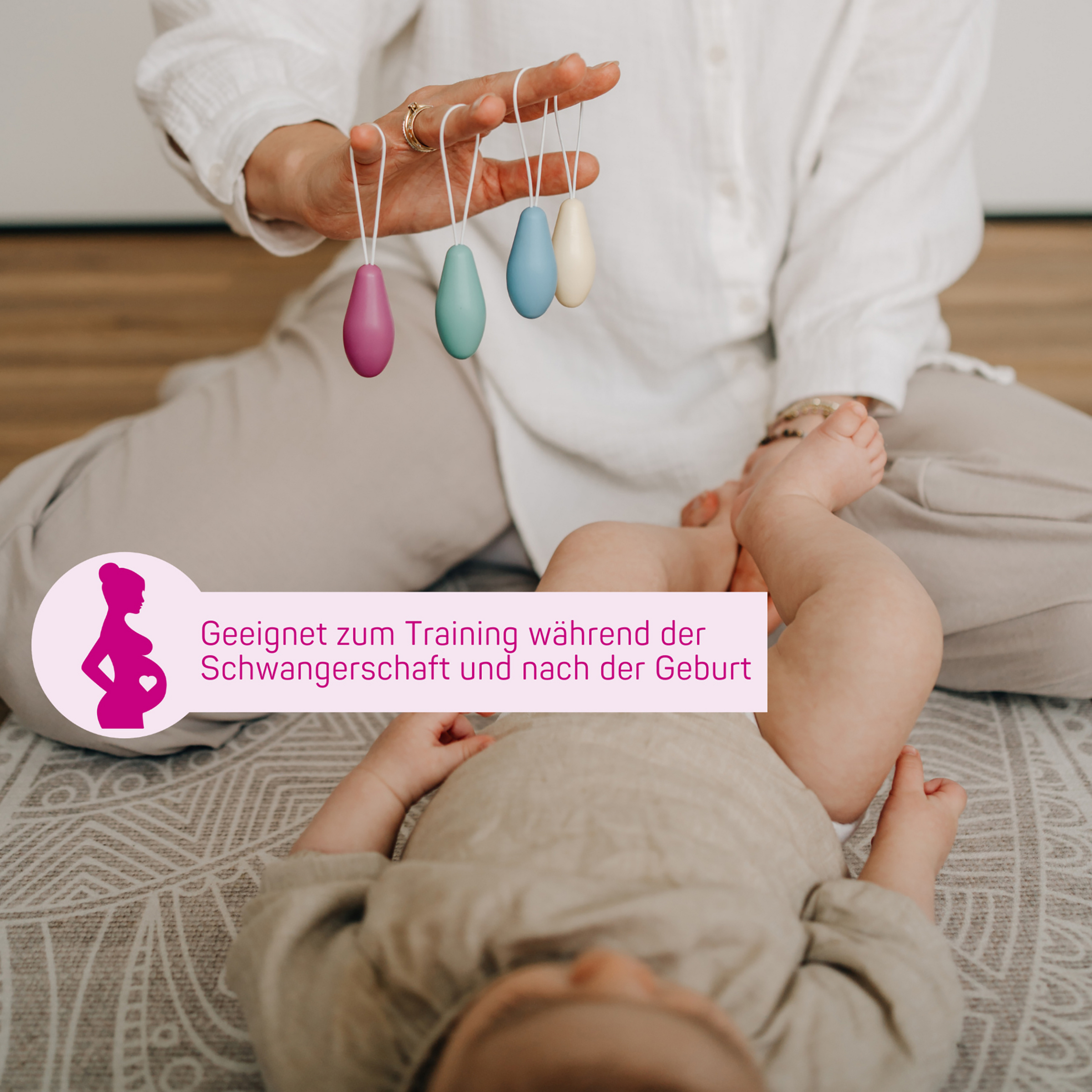 • Während einer unproblematischen Schwangerschaft kann ein Training mit ELANEE Beckenboden-Trainingshilfen Phase I aktiv den Beckenboden kräftigen und eventuellen Folgebeschwerden vorgebeugt werden.