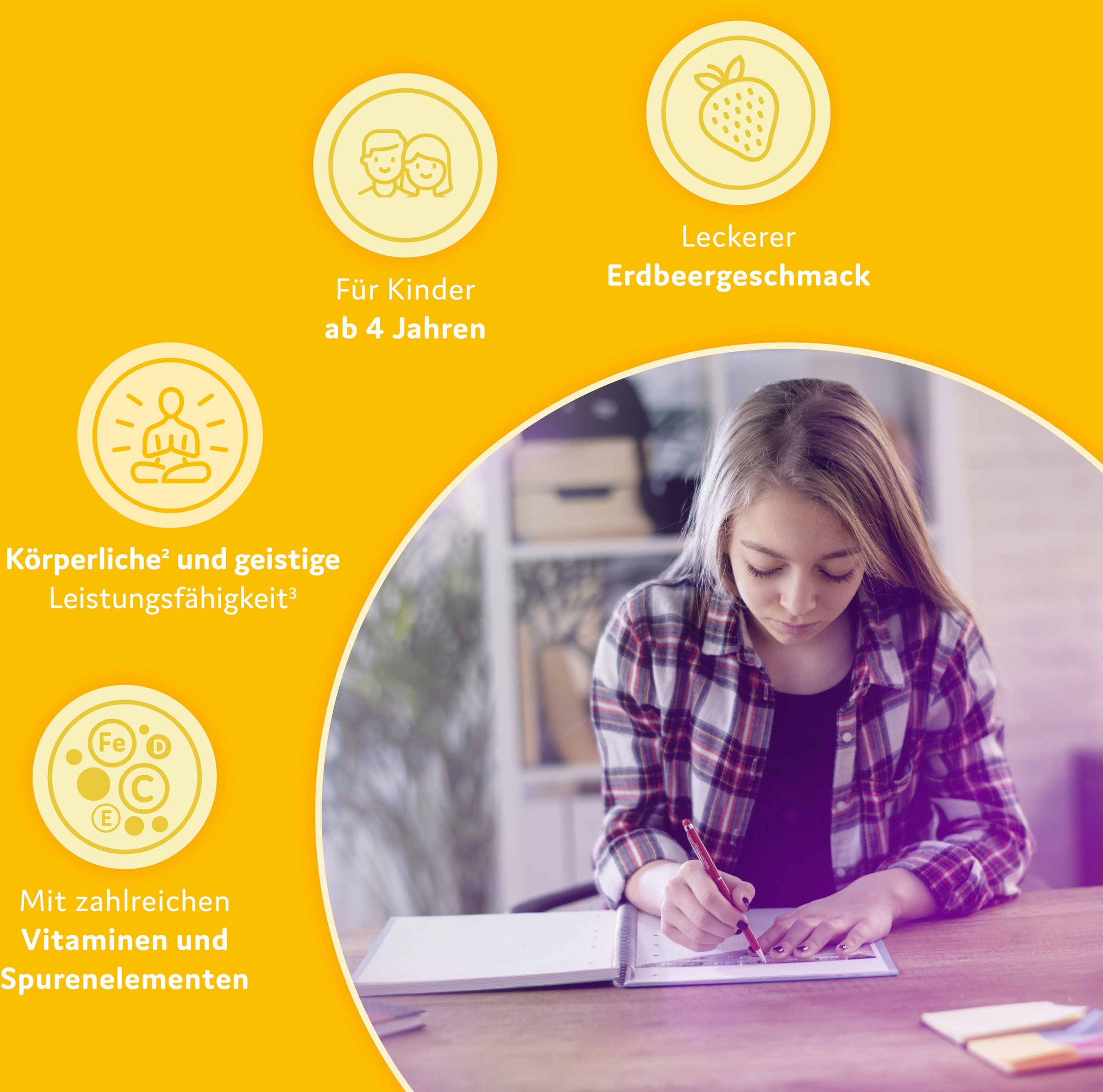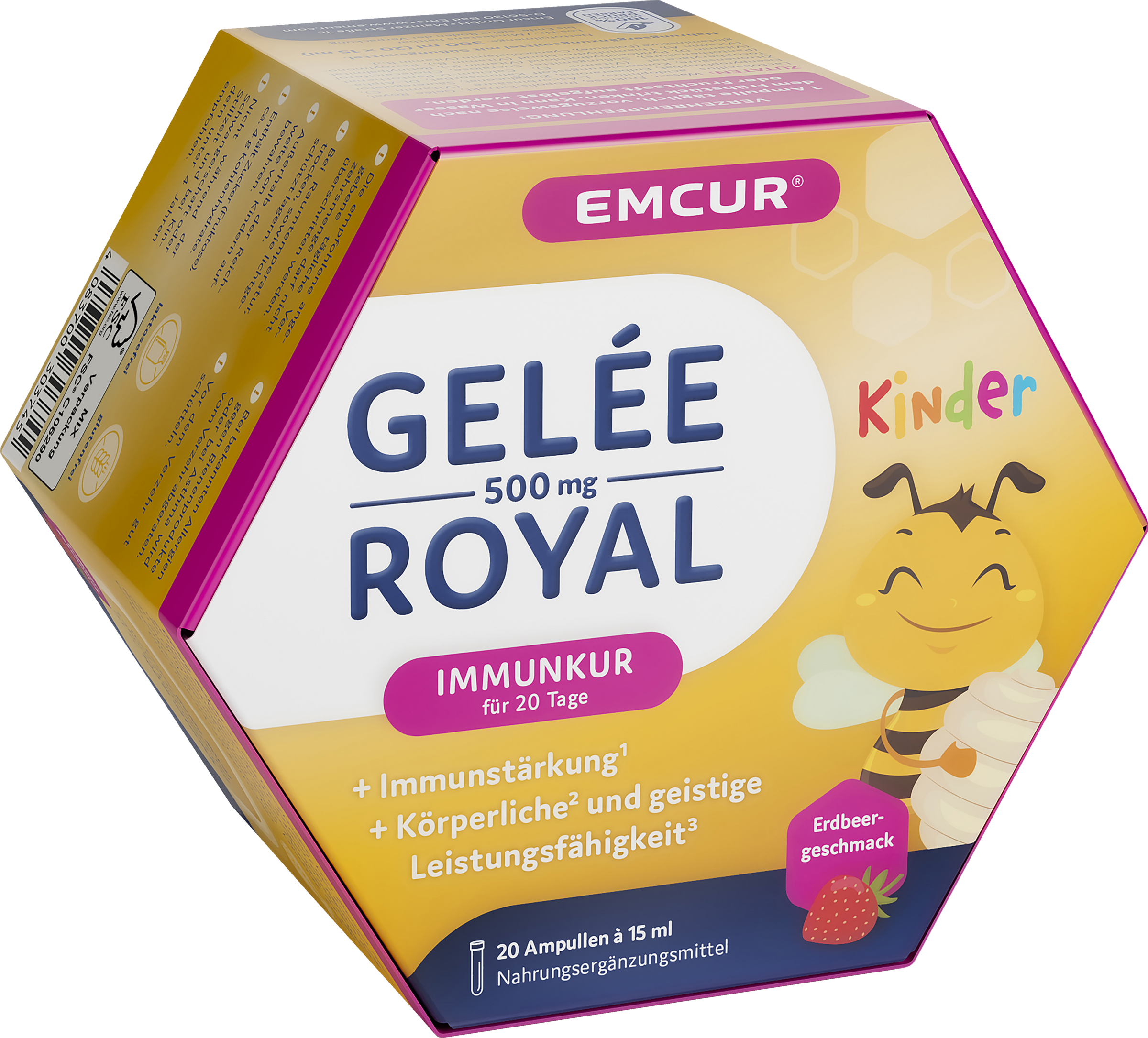 Und auch die 20-Tages-Immunkur EMCUR® Gelée Royal mit leckerem Erdbeergeschmack kann zur Immunstärkung¹ sowie zur Unterstützung der körperlichen² und geistigen Leistungsfähigkeit³ kinderleicht angewendet werden – mit nur einer Ampulle täglich!