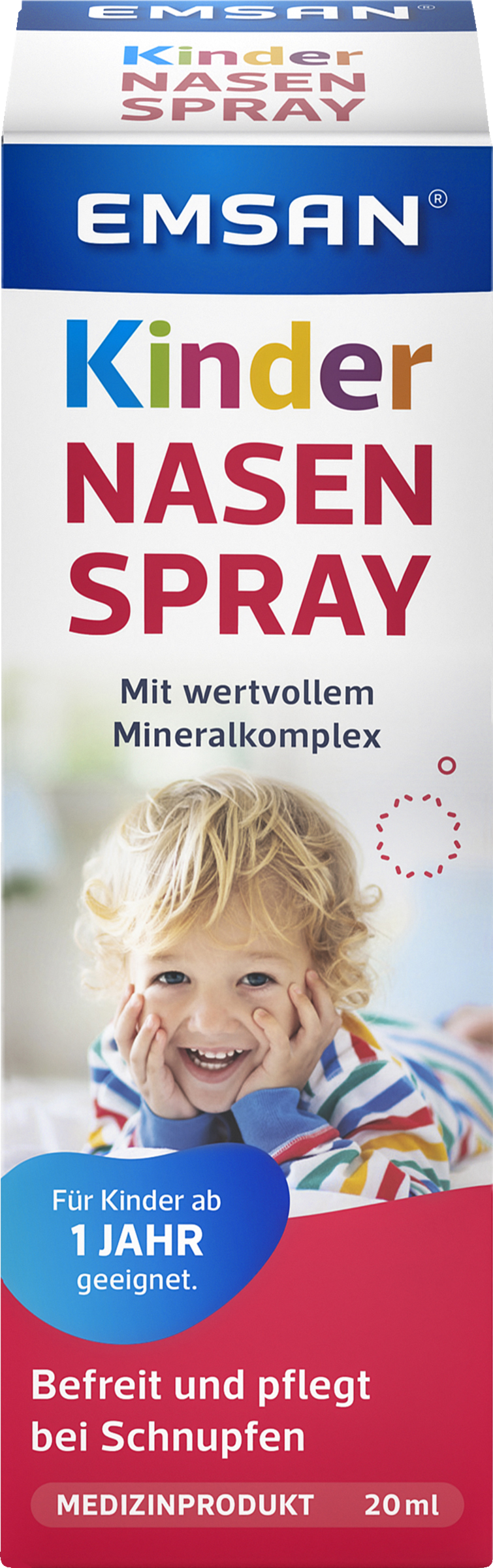 Das Emsan® Kindernasenspray wird bei Schnupfen sowie bei trockener und/oder verstopfter Nase eingesetzt – ganz gleich, ob die Beschwerden durch Klimaanlagen, Heizungsluft oder vermehrte Staub- und Schmutzbelastung verursacht wurden. Enthaltenes Natriumhydrogencarbonat trägt zur besseren Lösung zäher, festsitzender Sekrete und zur Neutralisierung entzündlicher Stoffwechselprodukte bei. Natürliches Quellsalz remineralisiert und revitalisiert die Nasenschleimhaut.