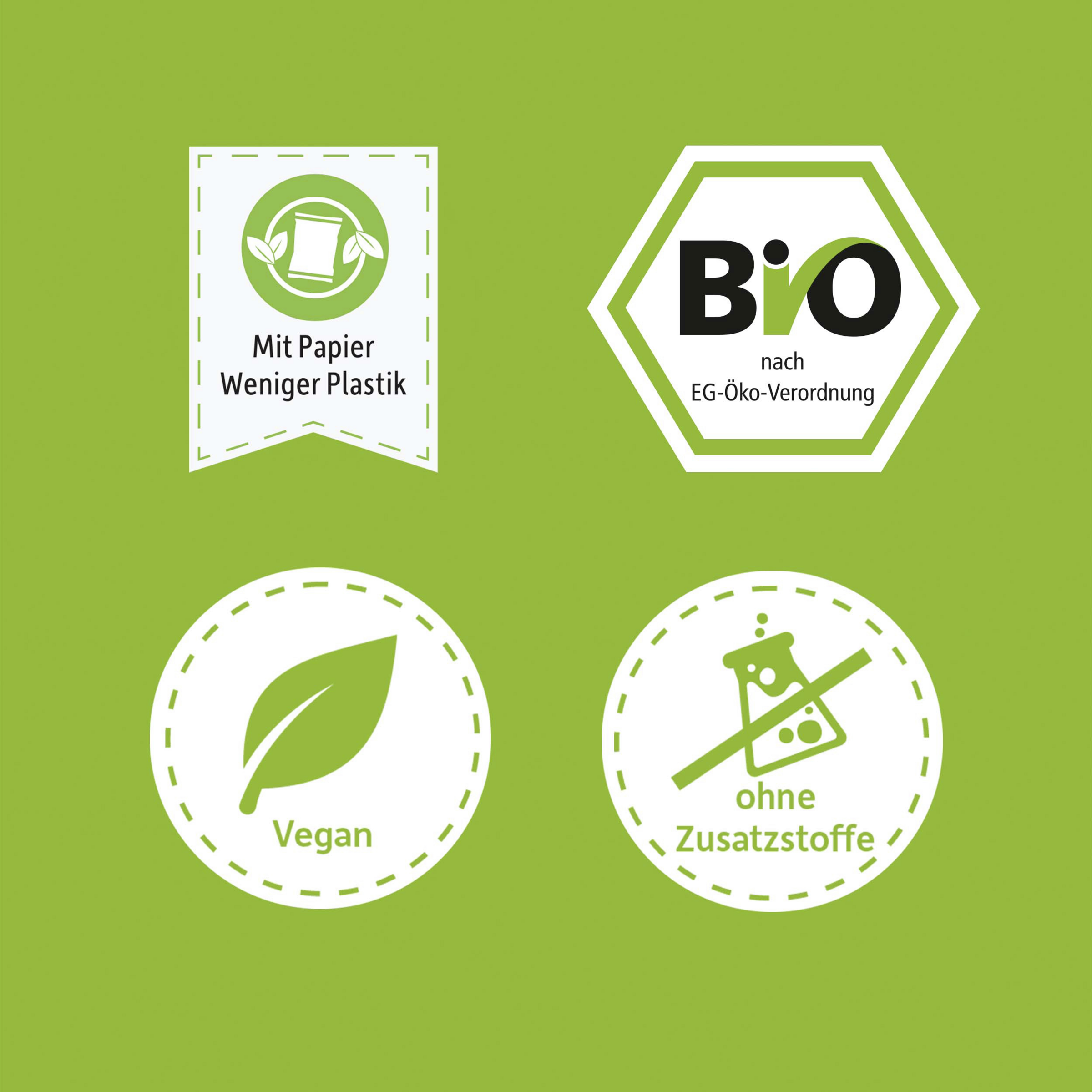Nach dem Naschen Druckverschluss schließen, damit die Fruchtstückchen knackig bleiben! Lichtgeschützt, kühl und trocken lagern.