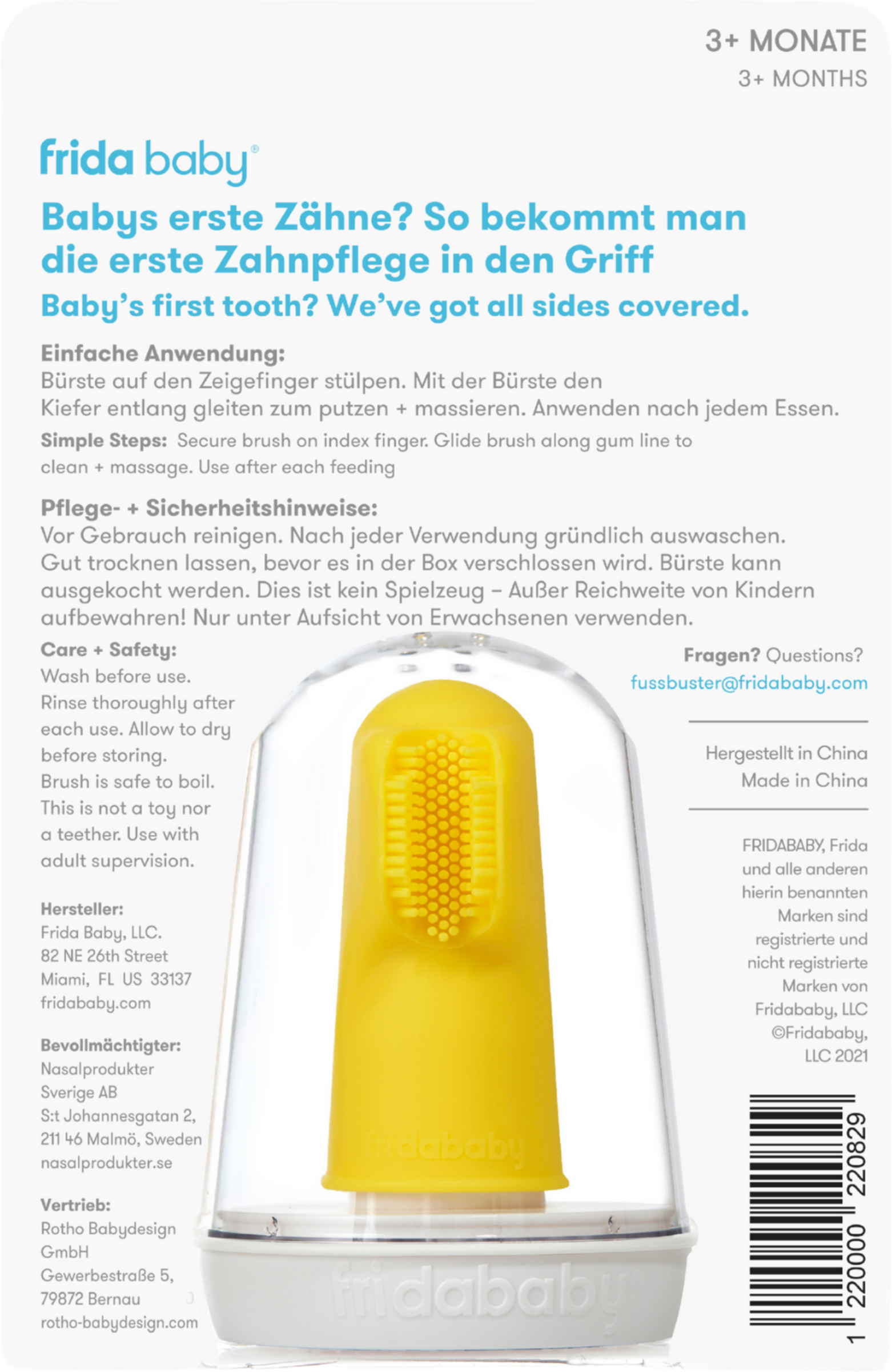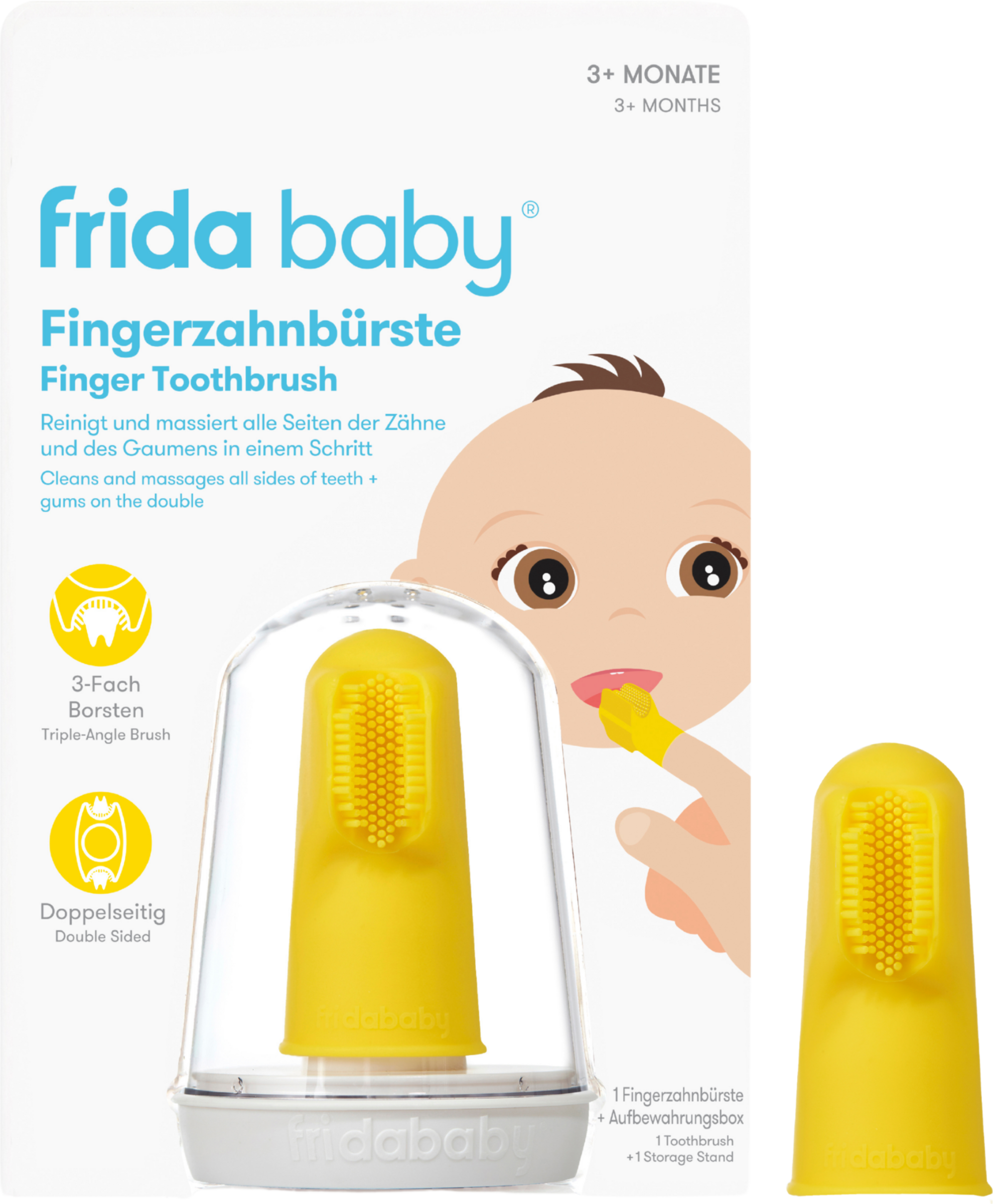 Entdecke die Frida Fingerzahnbürste für eine sanfte und effektive Kinderzahnpflege. Ideal geeignet als erste Zahnbürste für dein Baby, um die kleinen Zähnchen schonend zu reinigen – und das ganz ohne Stress für euch beide. Du kannst die Baby Zahnbürste wie einen Fingerhut über deinen Zeigefinger ziehen. Einfach und unkompliziert. Das doppelseitige Design ermöglicht es dir, die Ober- und Unterseite der Babyzähnchen gleichzeitig zu putzen.