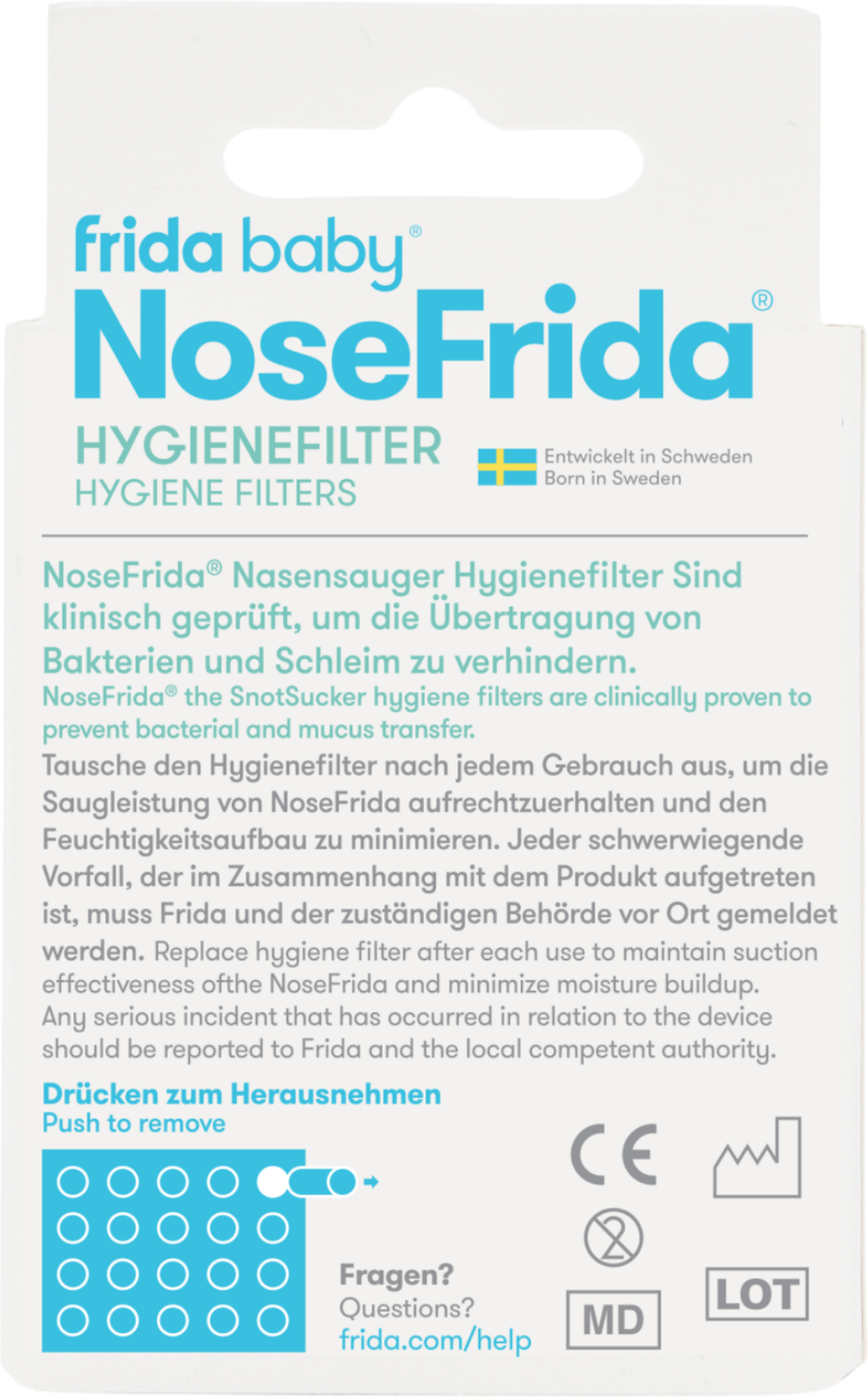 EIN PERFEKTES TEAM: Nutze diese Hygienefilter zusammen mit dem NoseFrida Nasensauger (separat erhältlich). Tausche den Hygienefilter nach jedem Gebrauch aus, um die Saugleistung von NoseFrida aufrechtzuerhalten und Feuchtigkeitsansammlungen zu verhindern.