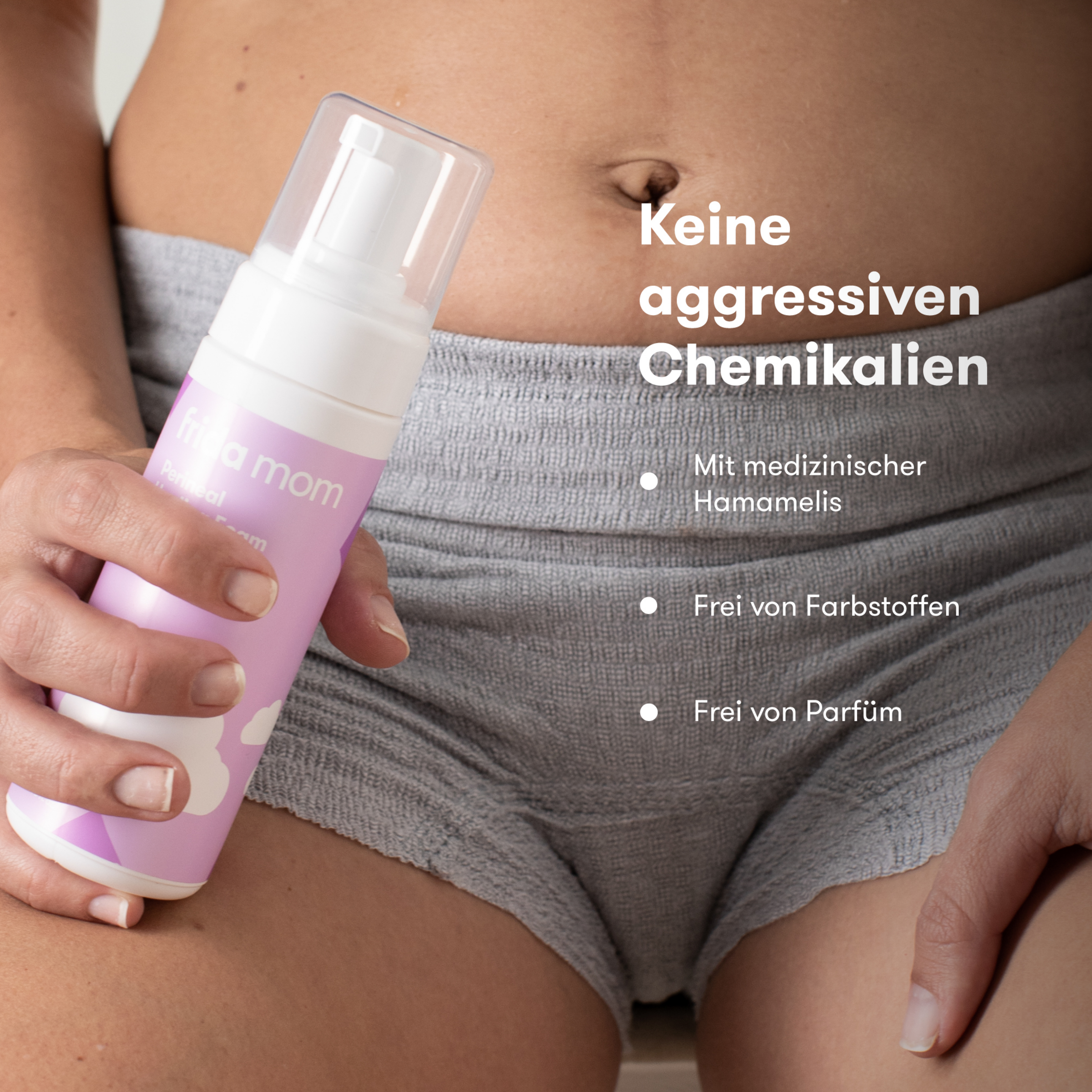 Der Frida Mom Intimpflegeschaum ist Schritt 5 im Frida Mom 5-stufigen Wochenbett Erholungsprogramm für Mamas.