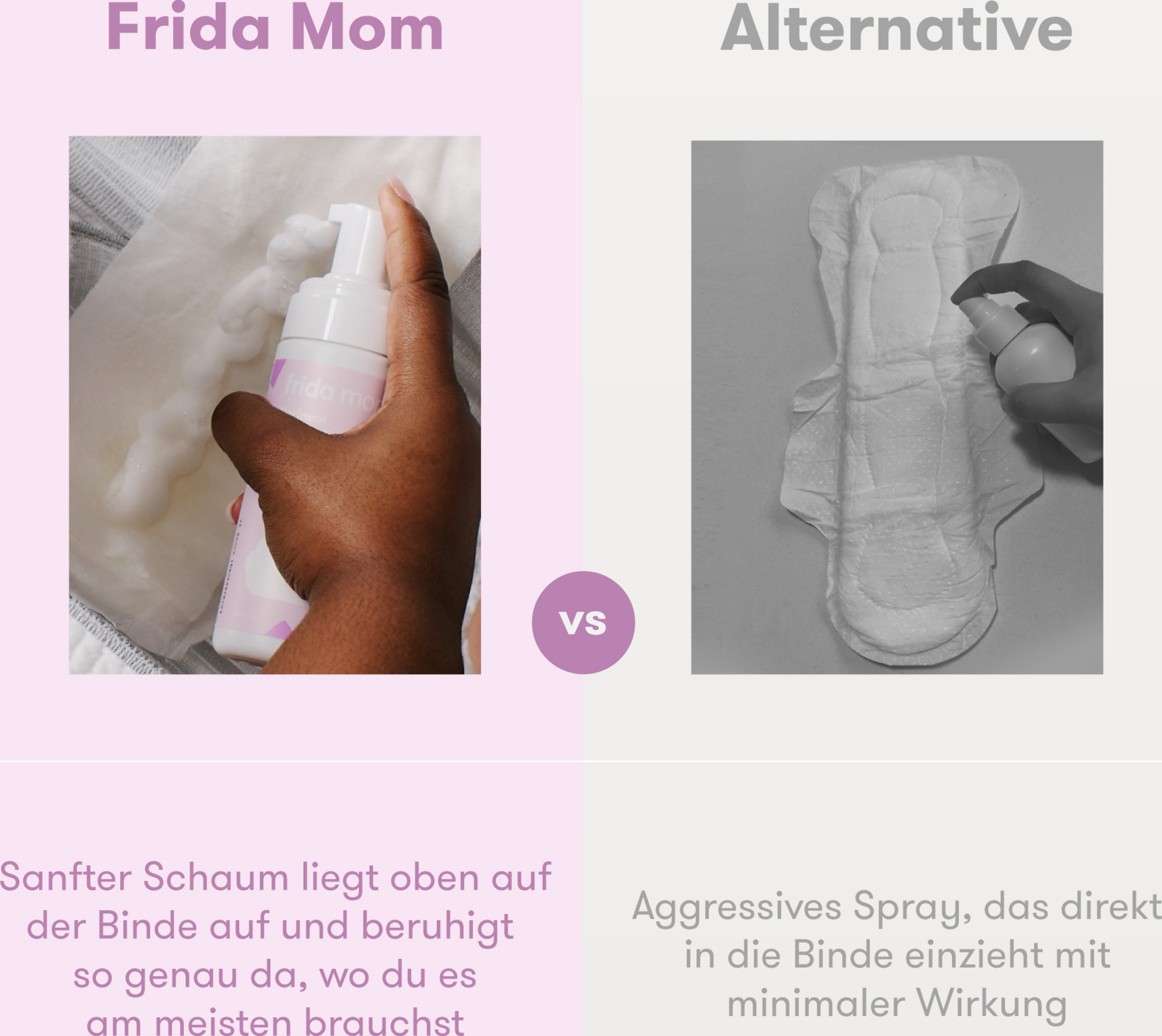 Pumpe den Schaum direkt auf die Binde oder die Einlage, um den kühlenden Effekt zu spüren und dadurch dein Wohlbefinden zu verbessern. Packe den Schaum in deine Geburtstasche für die ersten Toilettengänge nach der Geburt und bewahre ihn auch zu Hause stets griffbereit auf.