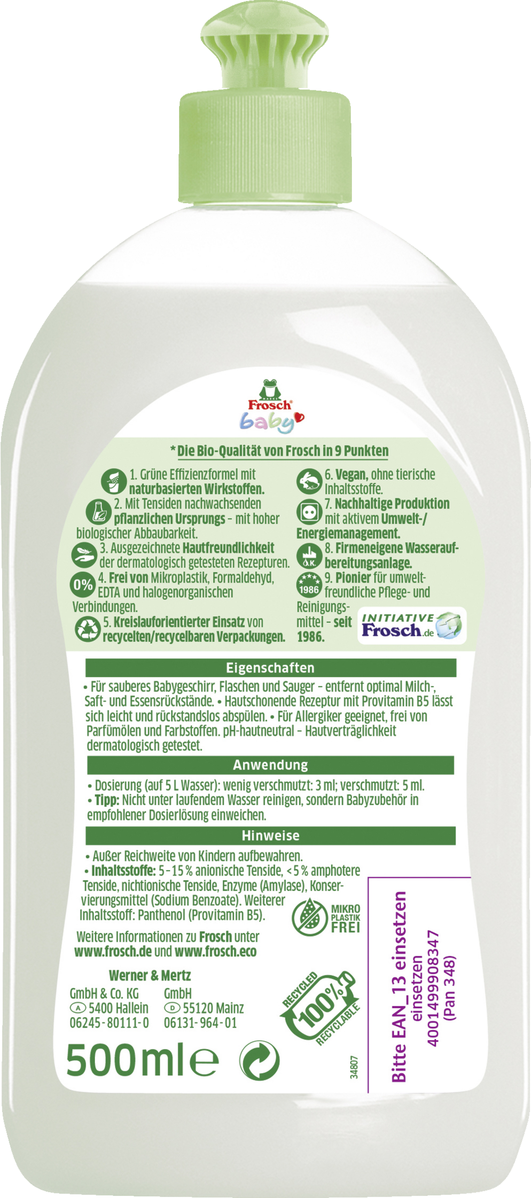 Der Frosch Baby Spül-Reiniger entfernt auf schonende und gleichzeitig effektive Weise Milch-, Brei- und Essensrückstände auf Babyzubehör, wie Schnuller, Sauger, Babyflaschen, Esslerngeschirr und abwaschbares Spielzeug. Die pH-hautneutrale und hypoallergene Rezeptur lässt sich leicht und restlos abspülen und ist für Babys völlig unbedenklich.