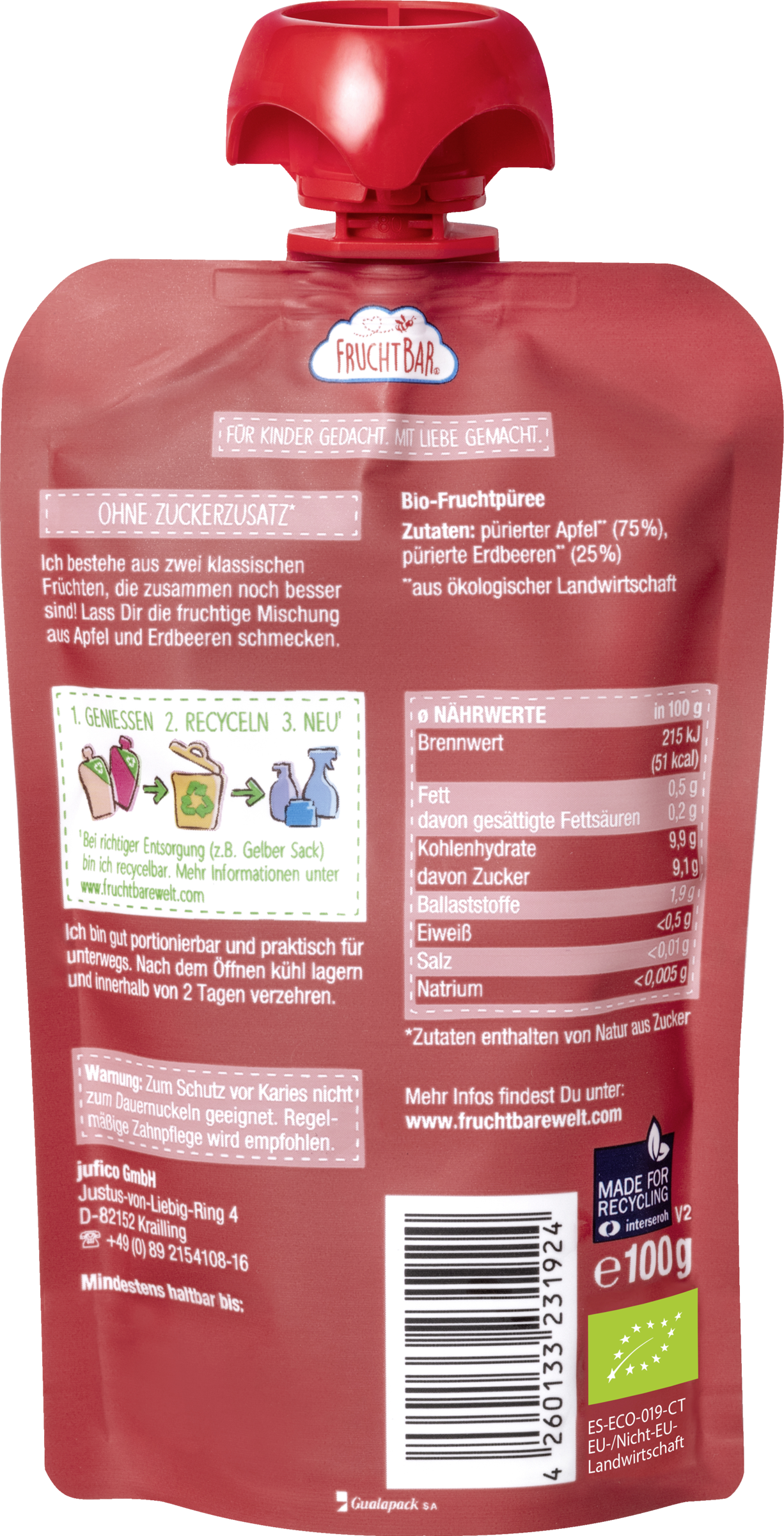 pürierter Apfel** (75%), pürierte Erdbeeren** (25%)