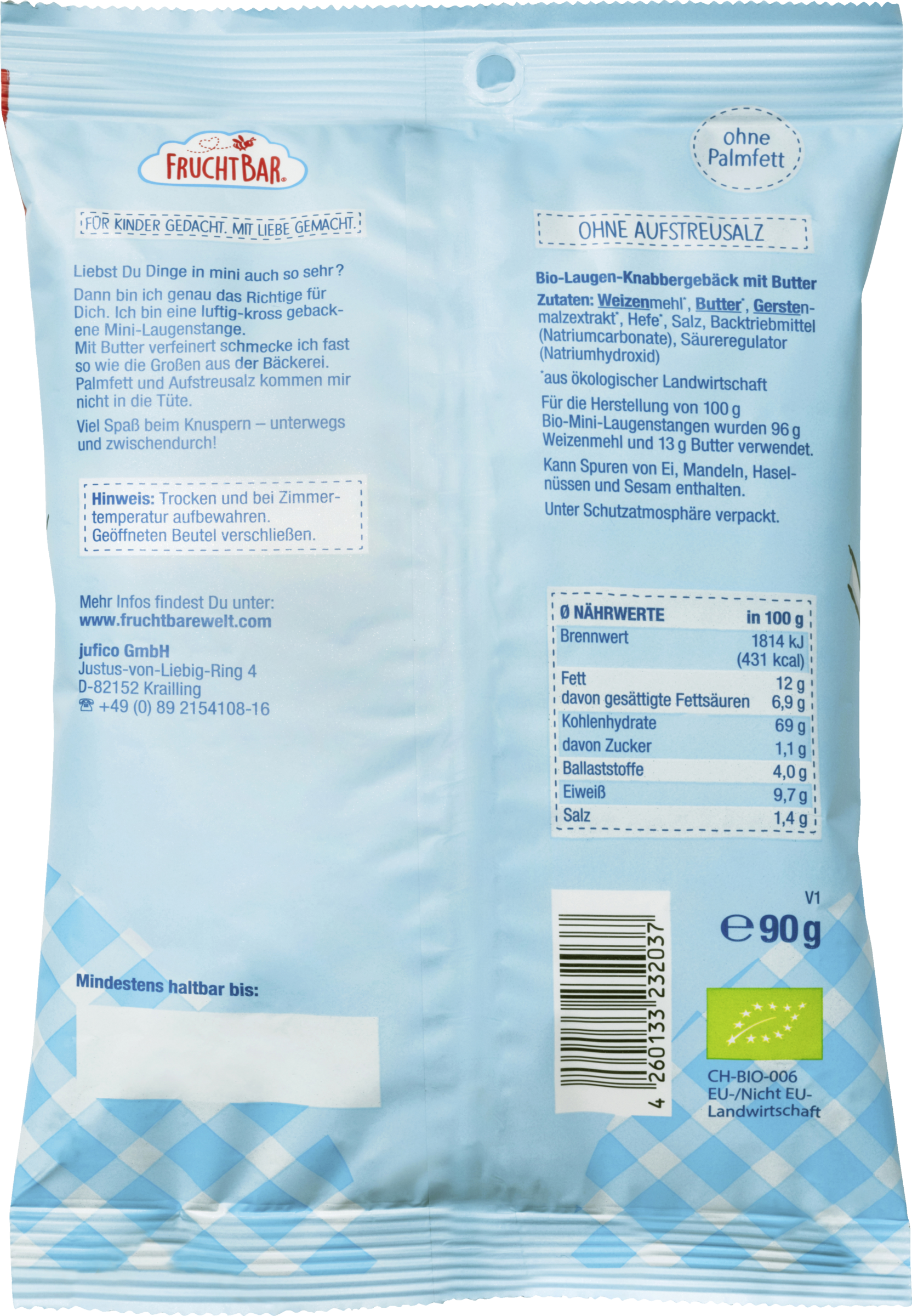 WEIZENmehl*, BUTTER*, GERSTEnmalzextrakt*, Hefe*, Salz, Backtriebmittel (Natriumhydrogencarbonat), Säureregulator (Natriumhydroxid)