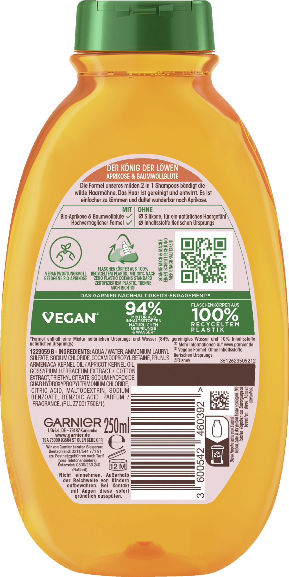 Milde Pflegeformel und zauberhafter Duft: Mit dem Garnier Wahre Schätze für Kinder Mildes Shampoo 2in1 Aprikose und Baumwollblüte wird Haarewaschen für Kinder zum Vergnügen. Der Aprikosen-Extrakt ist für seine pflegende Eigenschaften bekannt und besonders schonend zur Kinderkopfhaut. Und dank des Baumwollblüten-Extrakts erlangt das Haar wieder mehr Geschmeidigkeit. Für Kinder besonders wichtig: Die ultra-sanfte Formel brennt nicht in den Augen und befreit die Haare im Handumdrehen von Knoten, ohne zu ziepen. Darüber hinaus wurde das hochverträgliche Shampoo unter kinderärztlicher Aufsicht getestet.