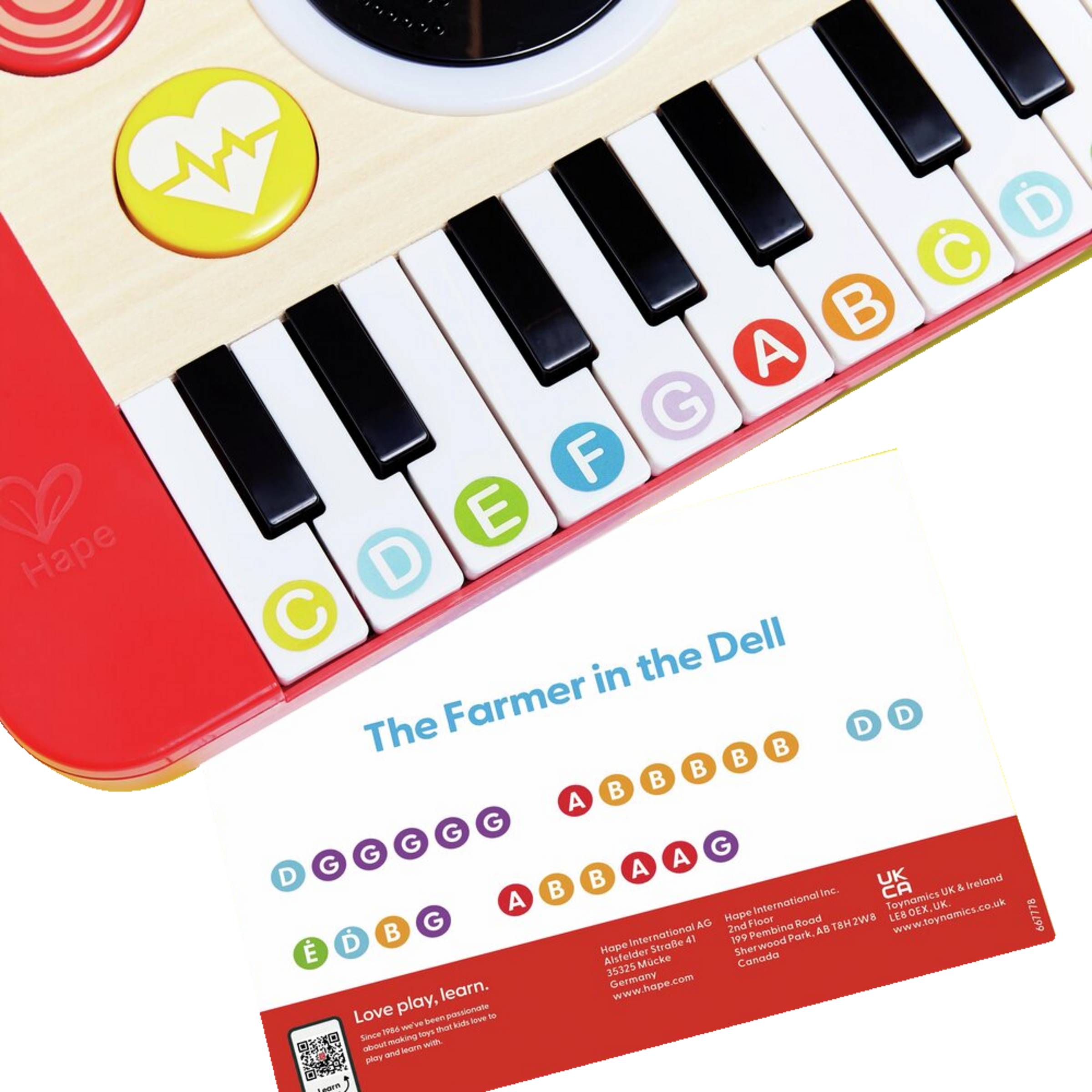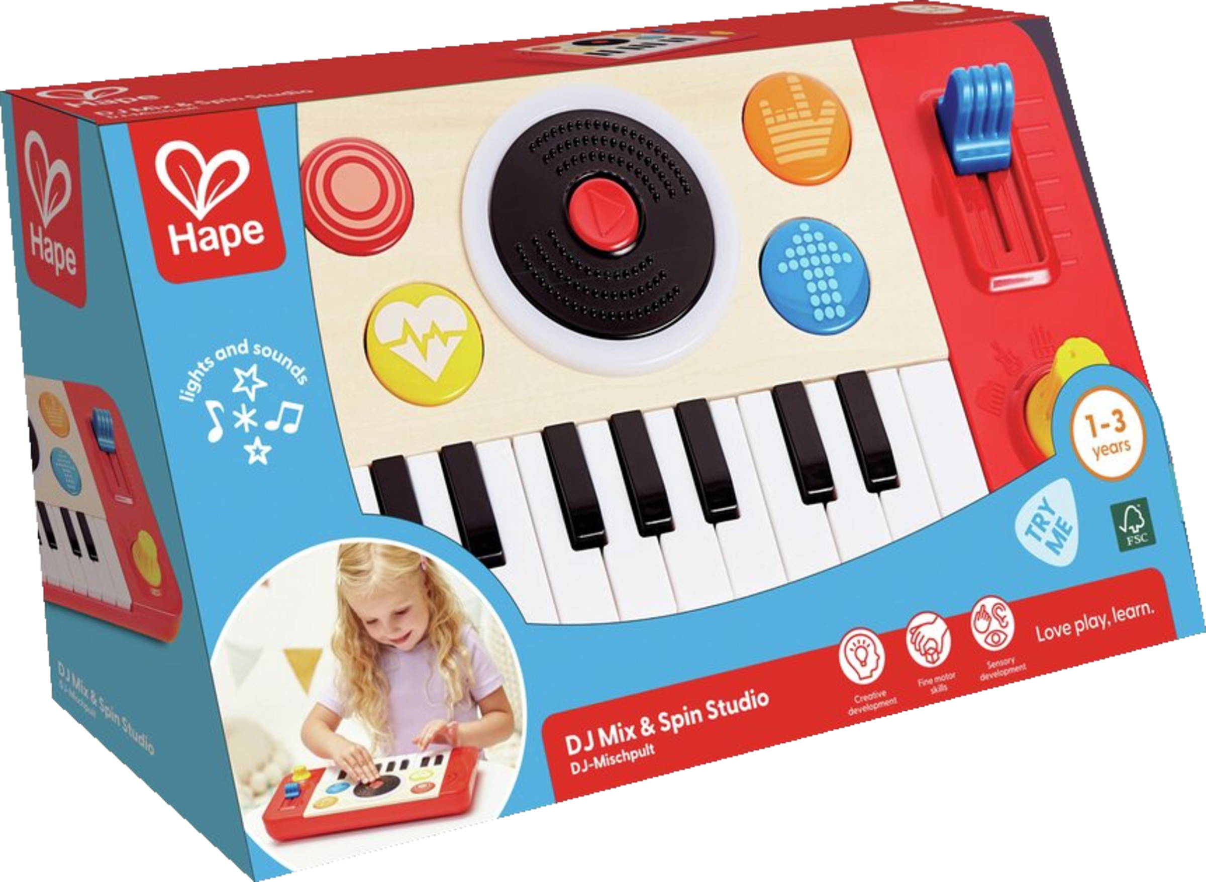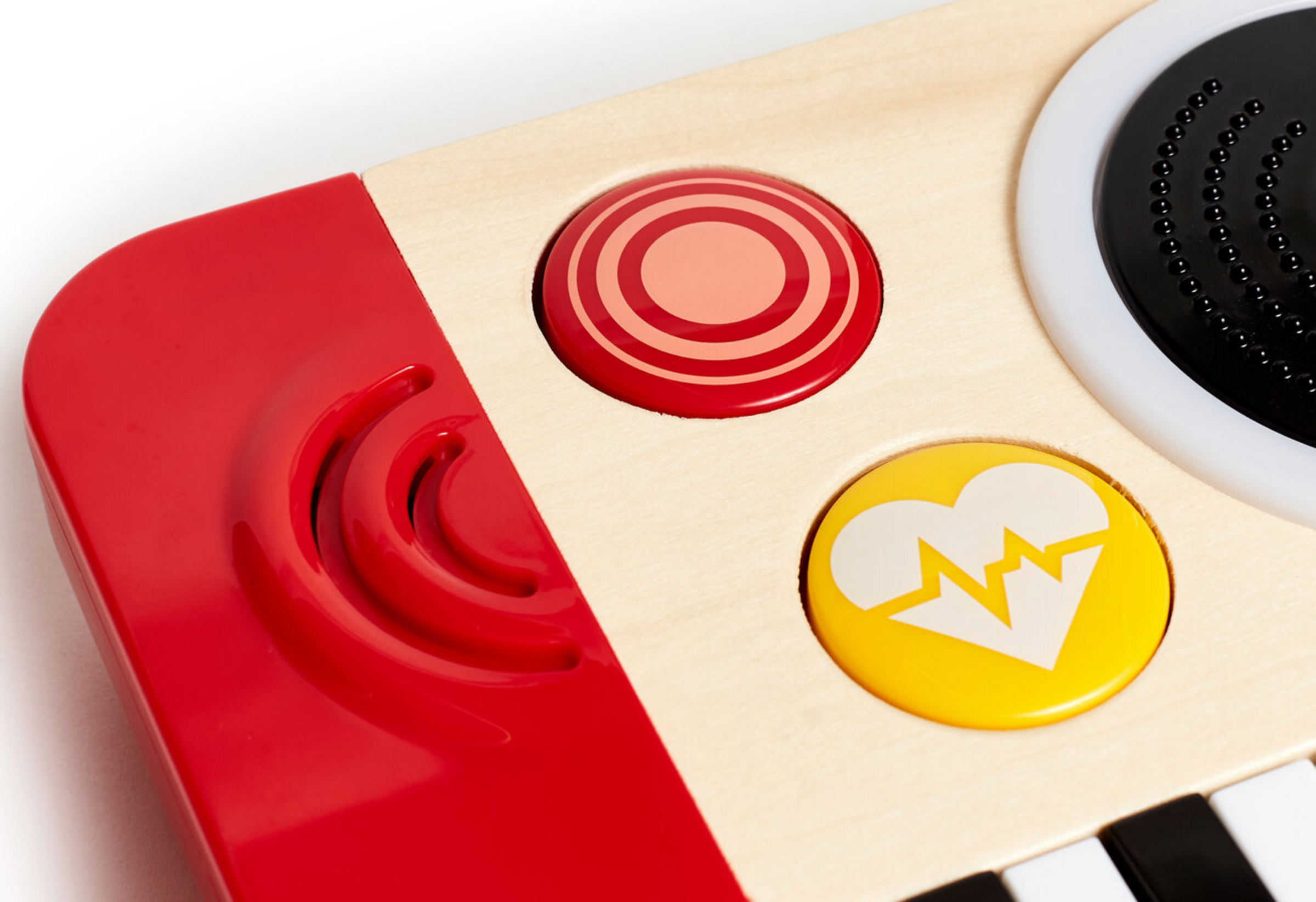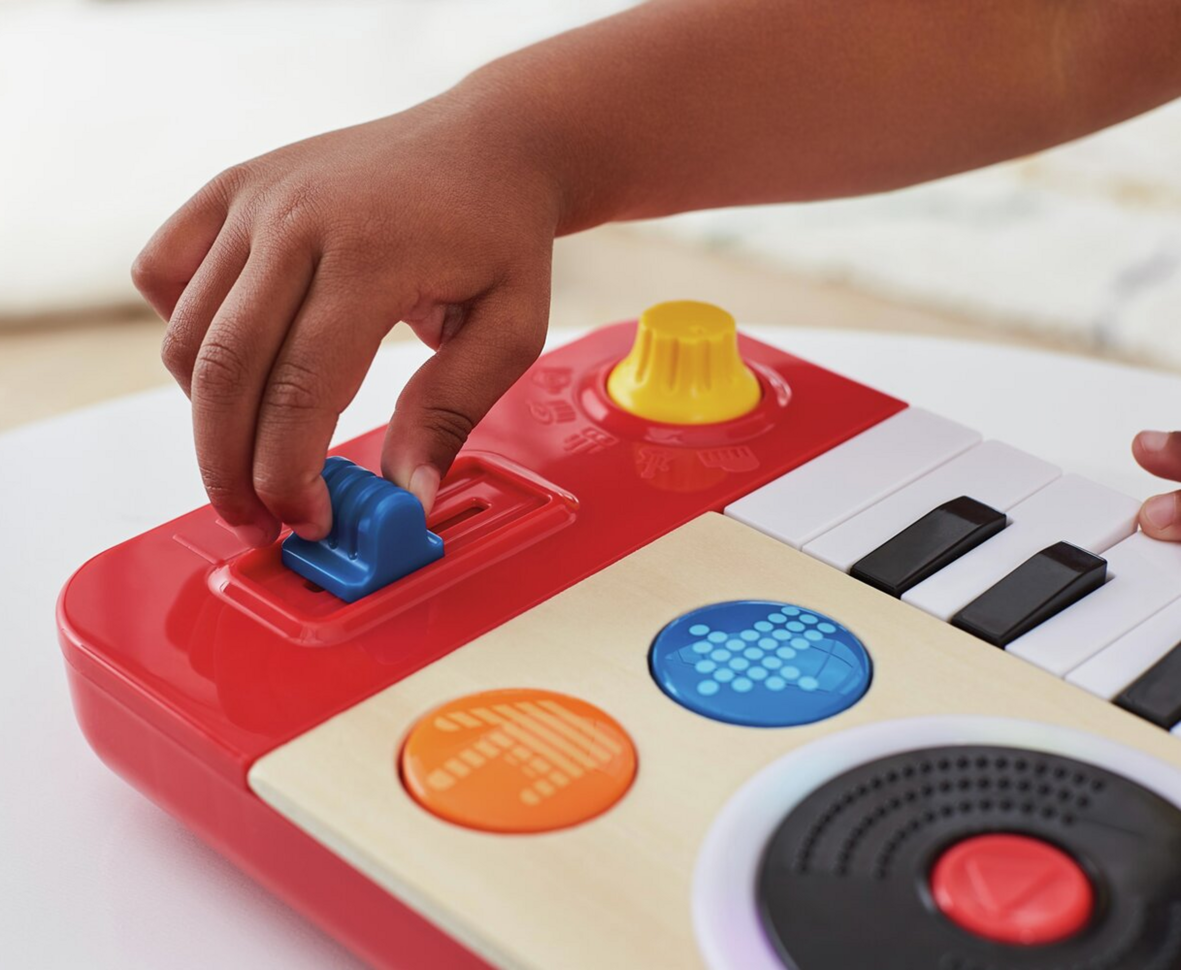 Dieses tragbare Musikinstrument überzeugt kleine DJs sofort. Es ist perfekt, um ihren ersten Sound zu kreieren. Das integrierte Keyboard bietet vier Instrumentenklänge und sorgt mit 18 lustigen Soundeffekten dafür, dass die Party so richtig abgeht.