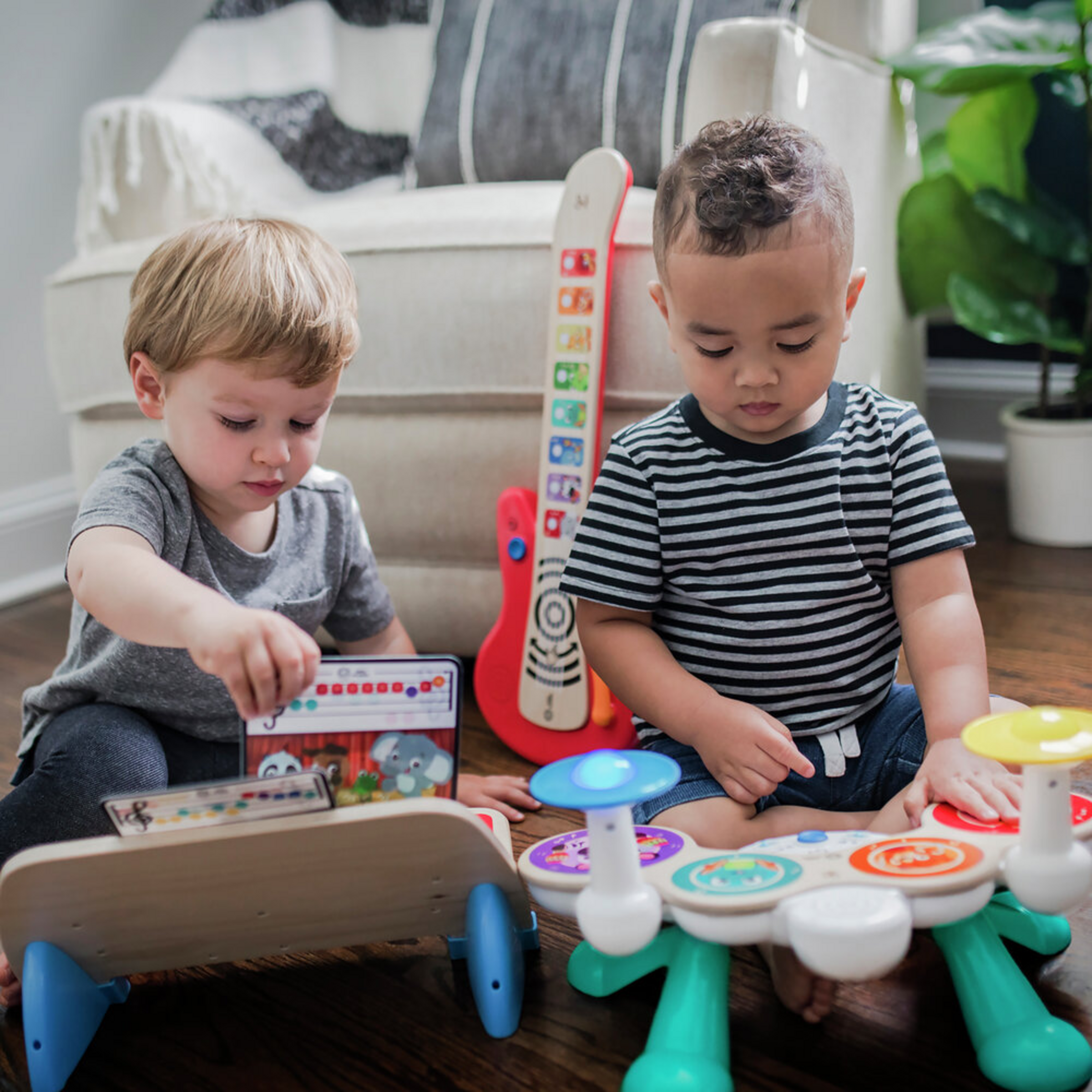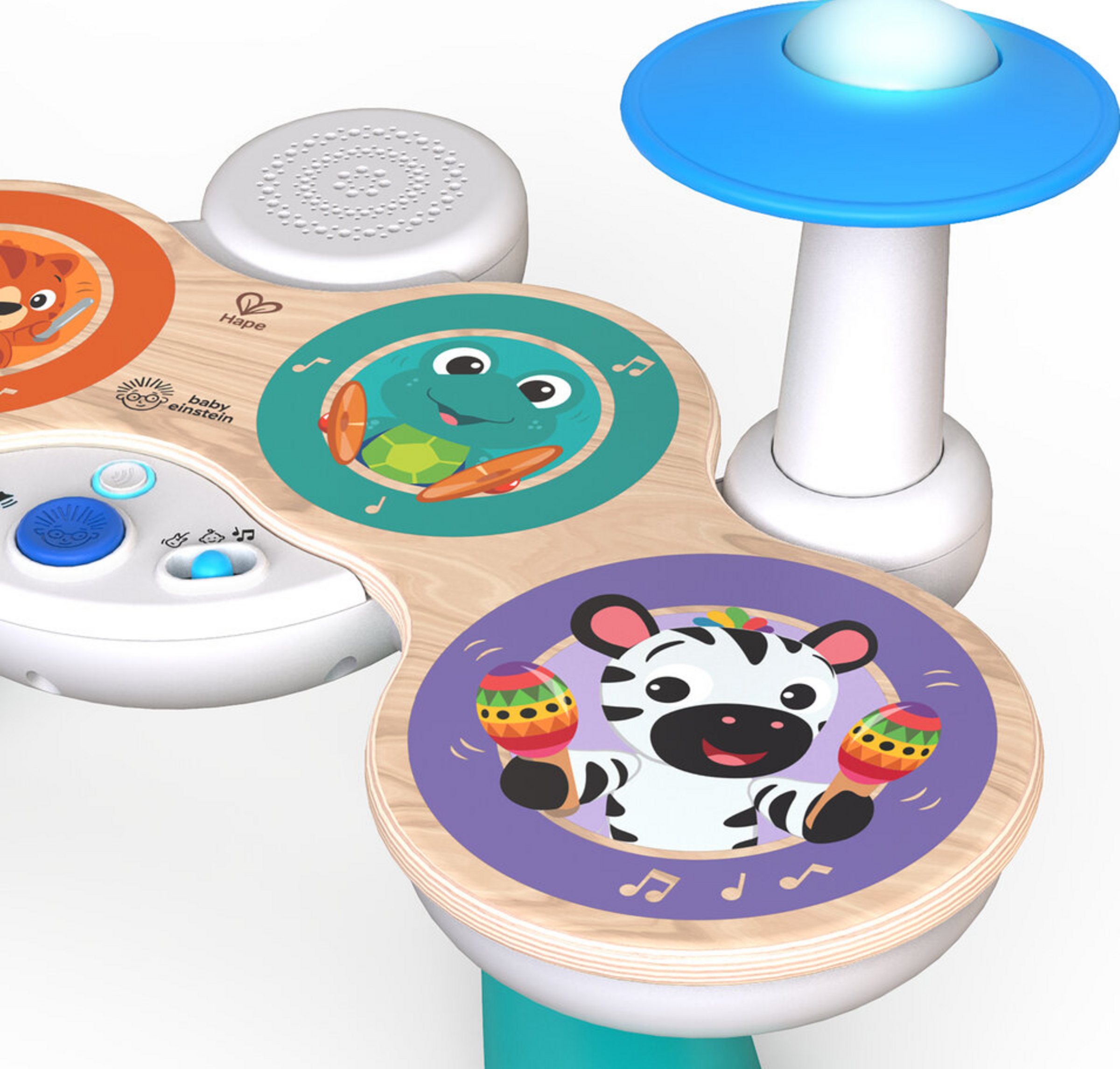Kinder entdecken ihre musikalische Ader – entweder allein oder mit der Familie und Freunden. Drücke die „connect”-Taste und spiele mit deiner eigenen Band! 3 Spielmodi: Komponieren, Kreatives Spiel und Freies Spiel – für Solo oder Zusammenspiel. Verschiedene Schlagzeugklänge durch leichte Berührung. 4 Schlagzeugpads mit Magic Touch™ -Technologie. Bunte LED-Leuchten an den Becken.