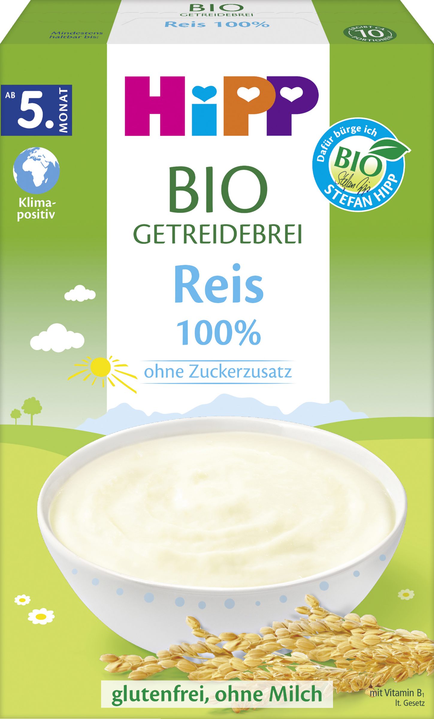 100 ml Wasser abkochen, auf ca. 50°C abkühlen lassen (4). 2-3 Esslöffel (12 g) HiPP Reis-Brei in einen Teller geben. Das abgekühlte Wasserhinzugeben und umrühren. Gewünschte Teilmenge (ca. 100 g) HiPP Früchte (z.B. Williams-Christ-Birne) oder wahlweise HiPP Gemüse (z.B. Kürbis) hinzugeben und einen Teelöffel HiPP Bio Rapsöl einrühren. Quellen lassen bis gewünschte Beschaffenheit erreicht ist. Temperatur überprüfen.