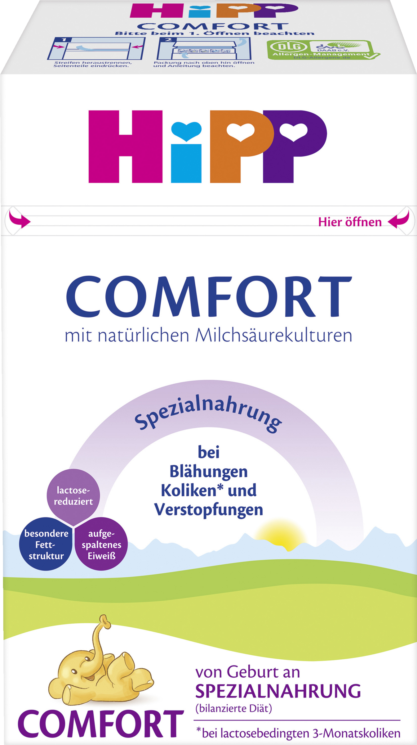 - Mit HiPP Comfort Spezialnahrung sollte sich Ihr Baby nach wenigen Tagen bereits wohler fühlen. Sollte sich keine Besserung der Beschwerden einstellen, halten Sie bitte nochmals Rücksprache mit Ihrem Kinderarzt.
