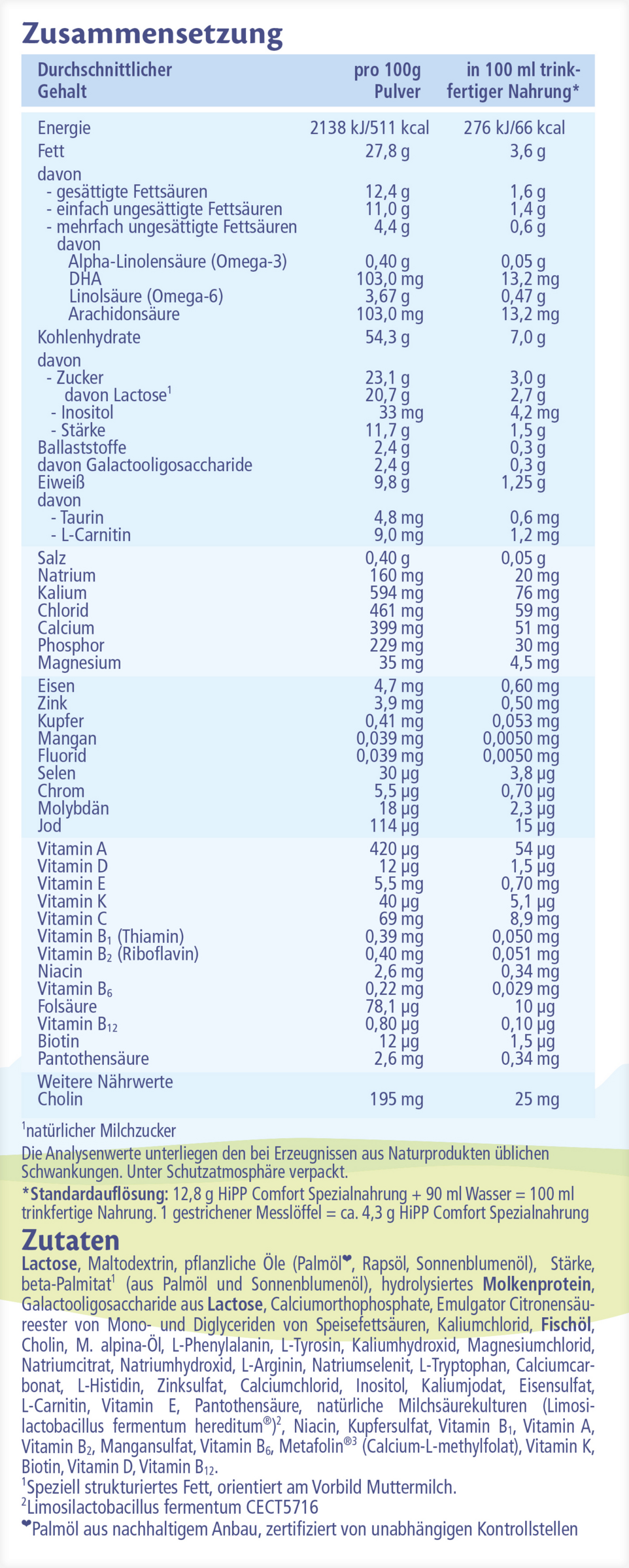 enthält HiPP Comfort Spezialnahrung außerdem: