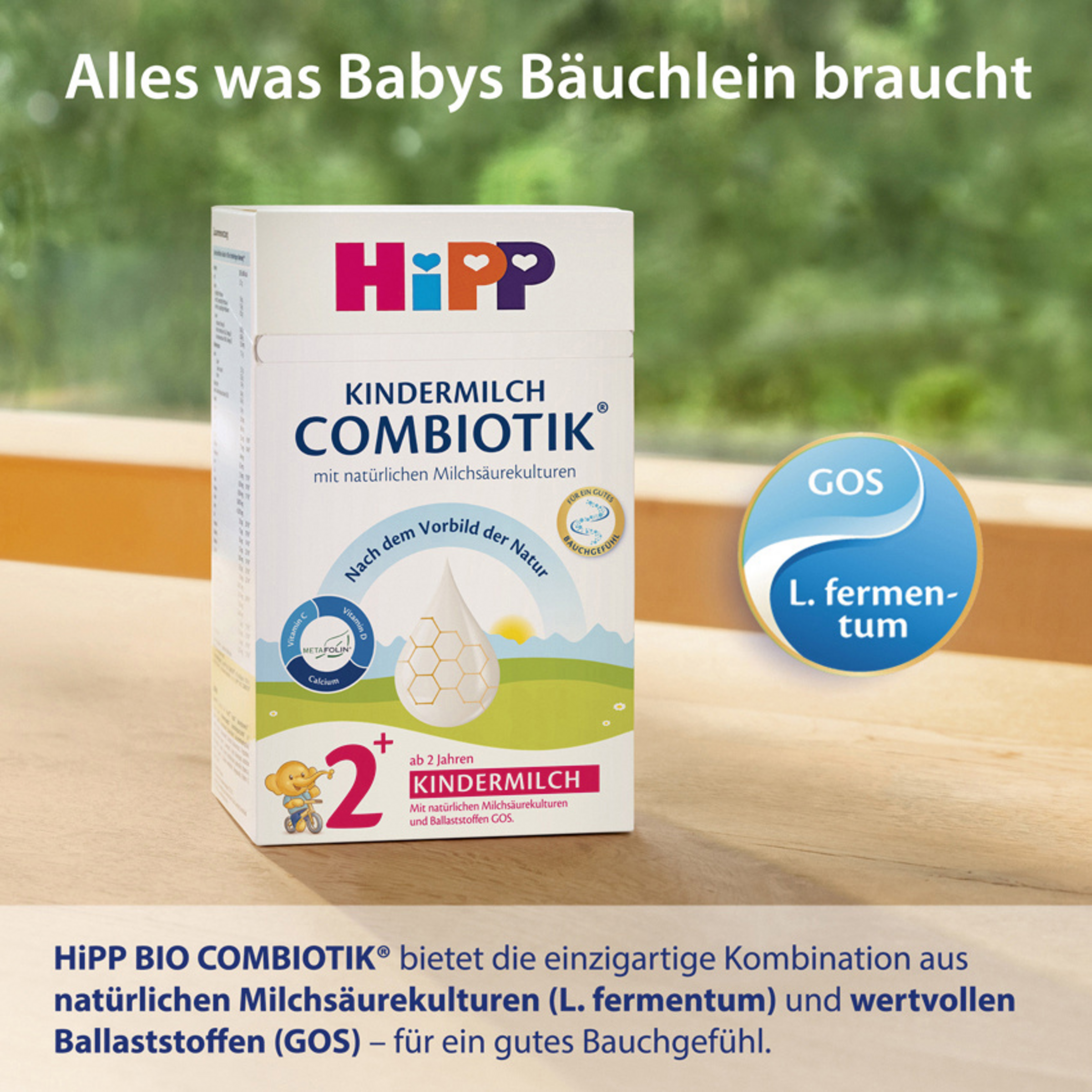 Auch wenn sich ihr Kind beim Essen schon wie ein Großer verhält, gilt, dass Kleinkinder keine kleinen Erwachsenen sind. Deswegen ist eine kindgerechte Ernährung bis ins Grundschulalter besonders wichtig. Die HiPP Kindermilch COMBIOTIK® wurde von Ernährungsexperten entwickelt und liefert die Wachstumsbausteine, die Kleinkinder in der wichtigen Entwicklungsphase bis drei Jahre benötigen. So unterstützt sie mit der Extraportion Vitamin D und Calcium einen gesunden Knochenaufbau. Gleichzeitig tragen die Vitamine A und C zu einem starken Immunsystem bei. Darüber hinaus enthält HiPP Kindermilch COMBIOTIK® natürliche Milchsäurekulturen. Die HiPP COMBIOTIK® Kindermilch 2+ kann man mit wenig Aufwand vielseitig verwenden. Zum Beispiel im Müesli, zusammen mit Obst als Smoothie oder abends vor dem Zähneputzen.